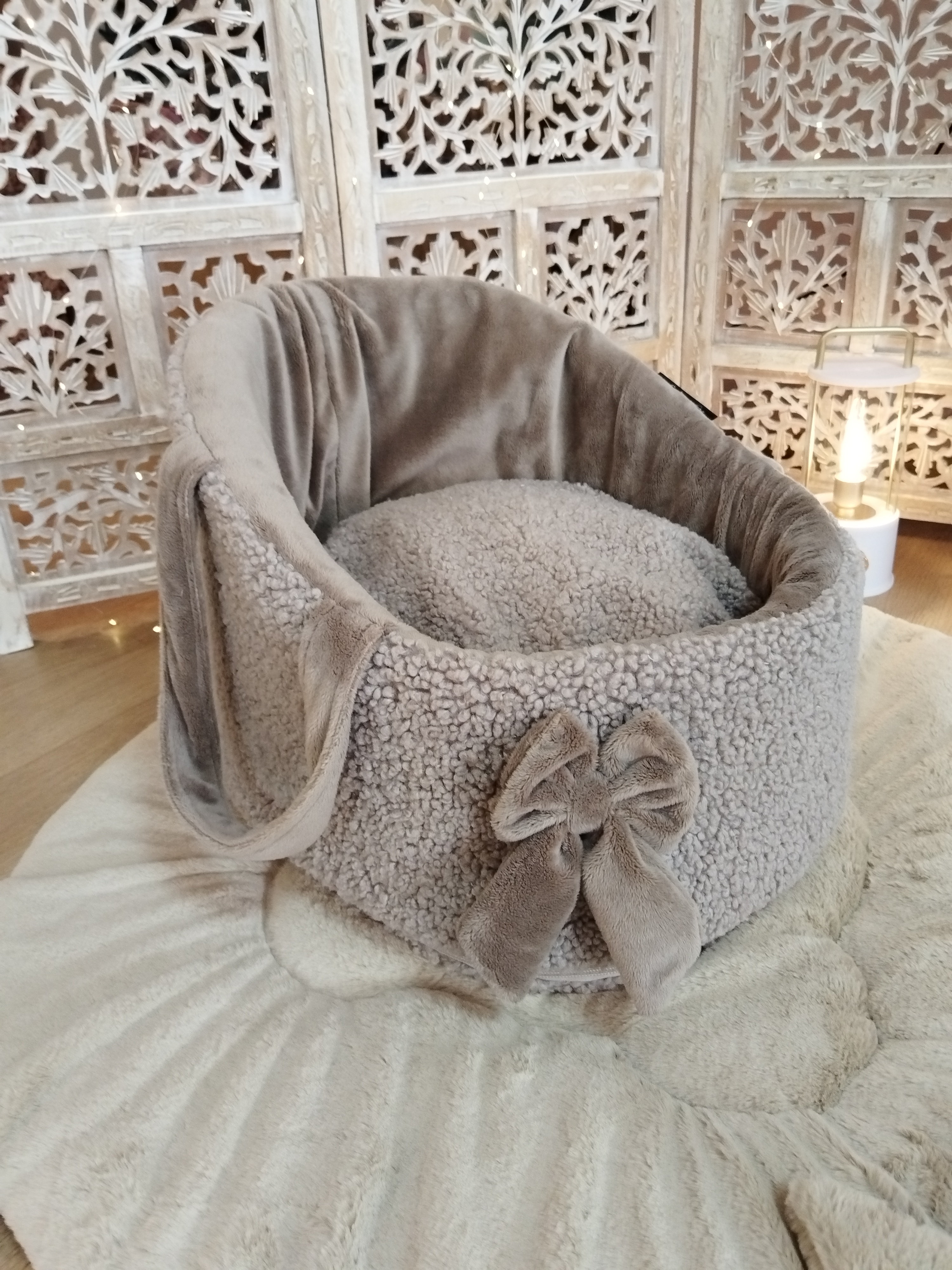 – Intérieur, nœud décoratif et anses en minky délicat, pour une finition harmonieuse et élégante.