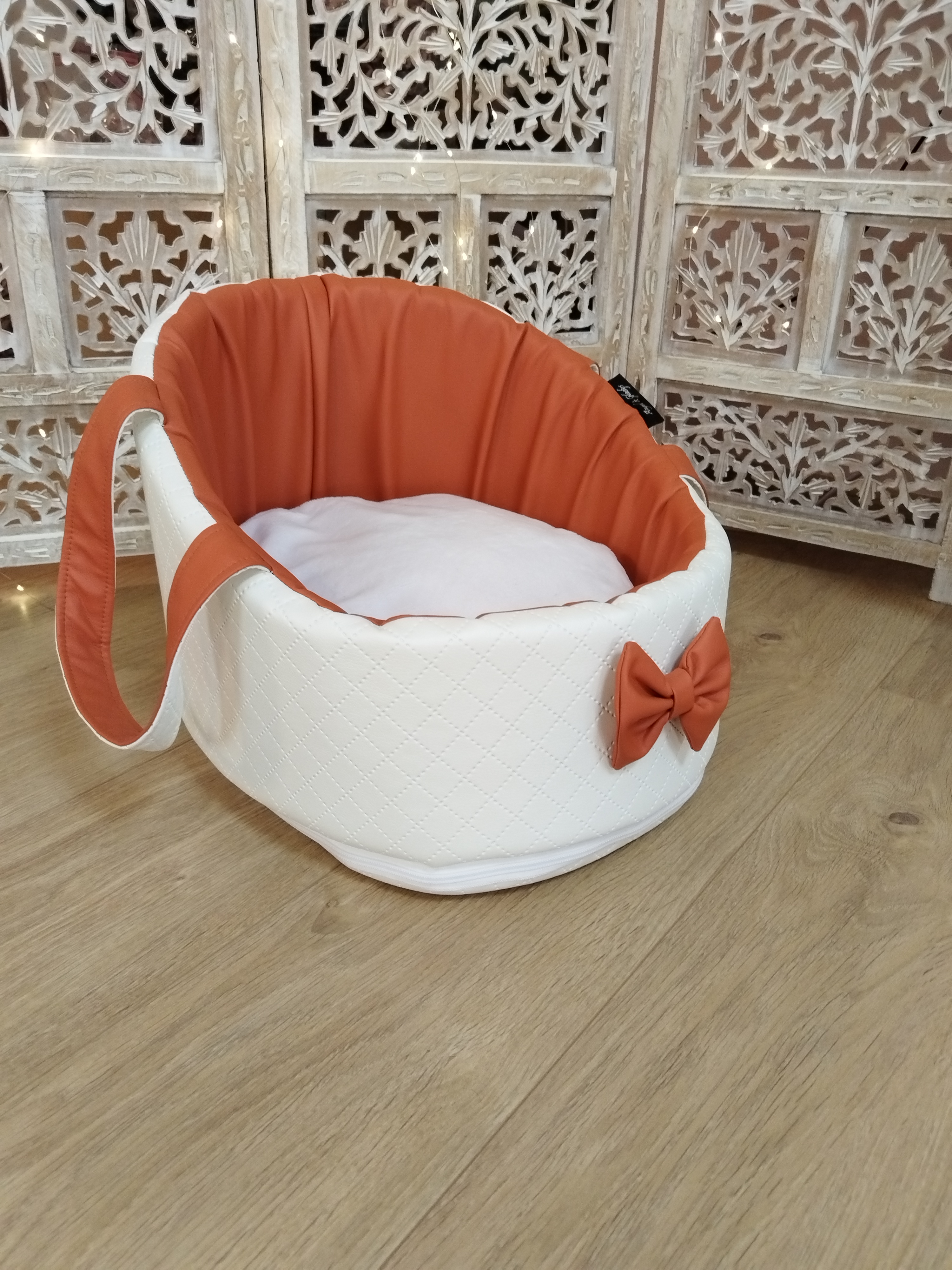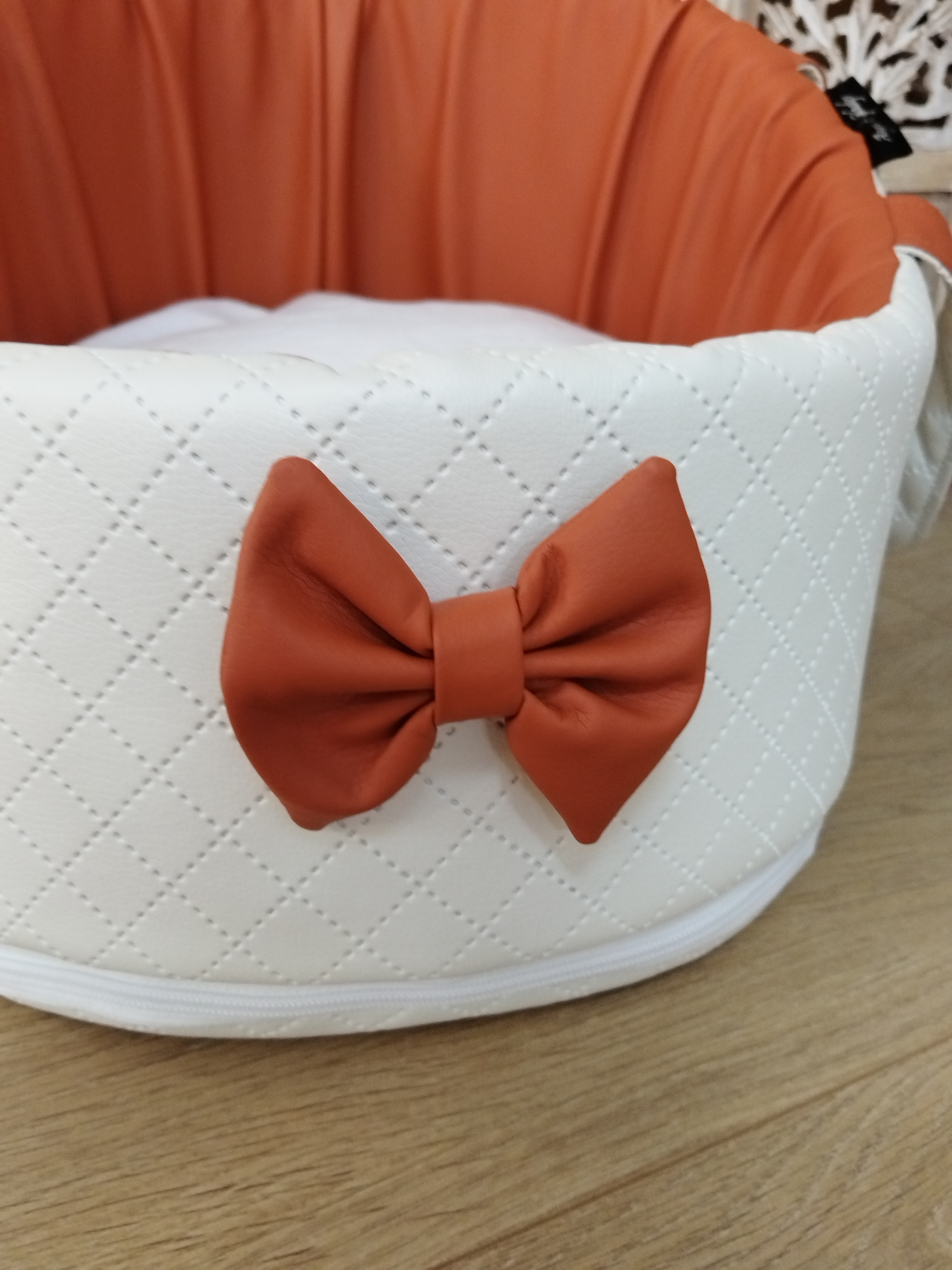 • Structure : Simili cuir Blanc Irisé & orange – élégant, résistant et facile à entretenir