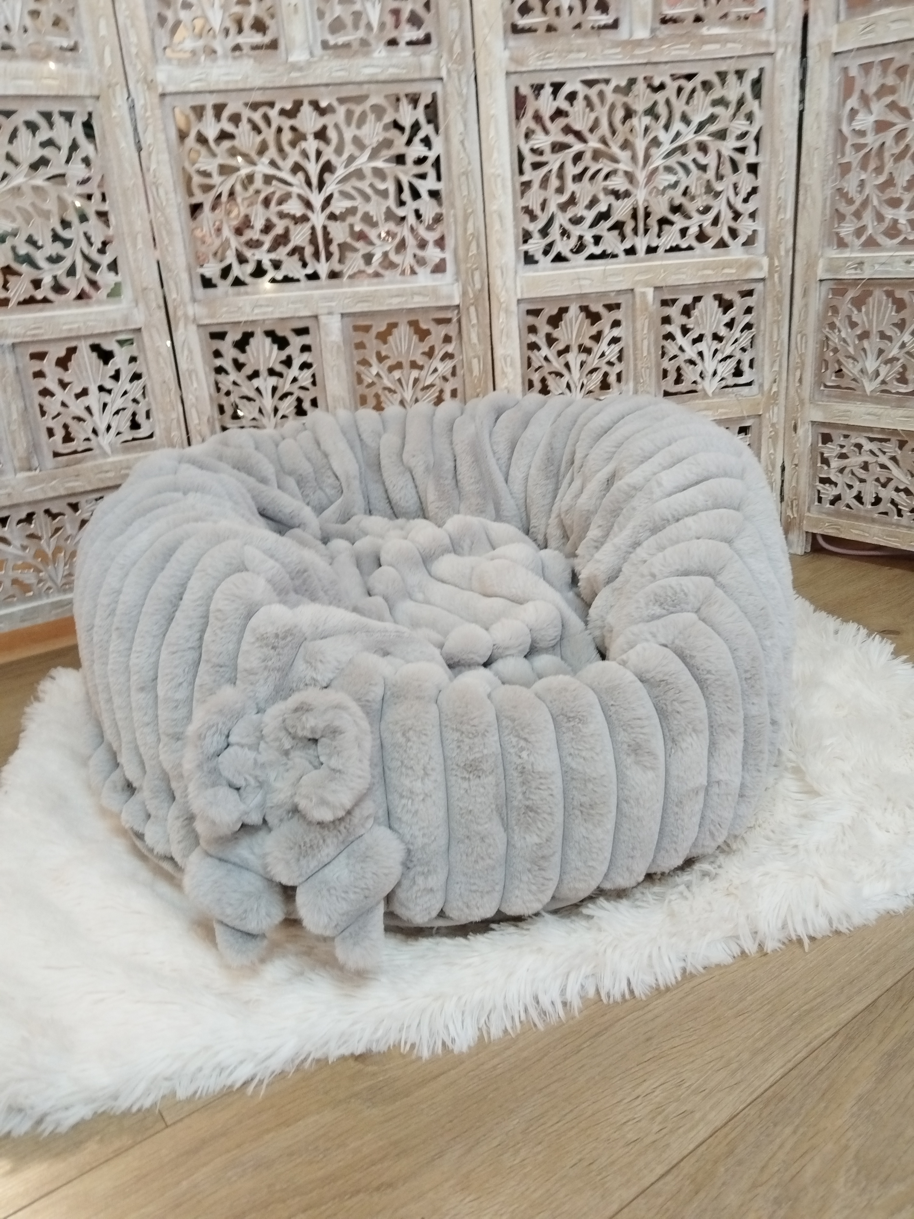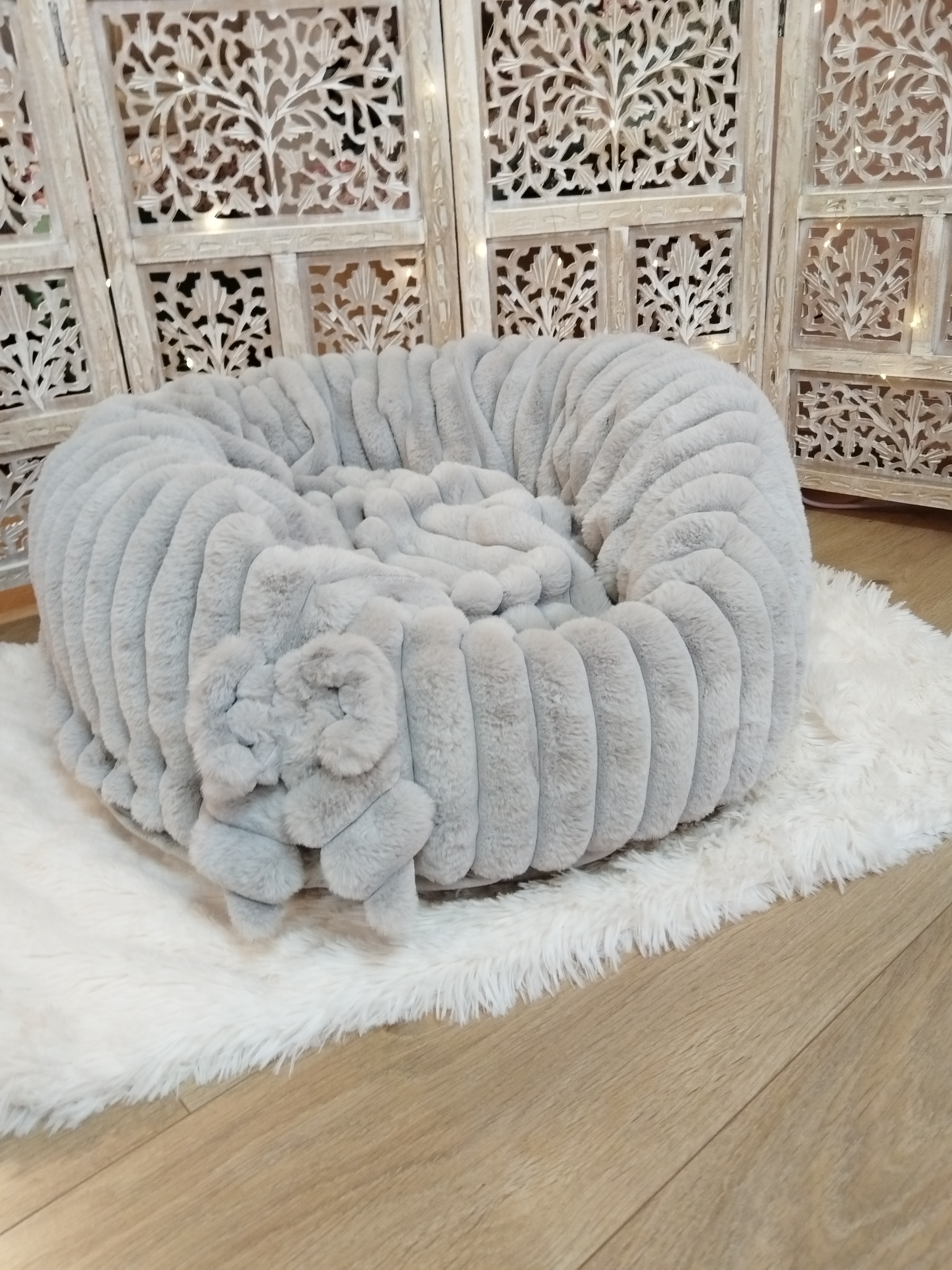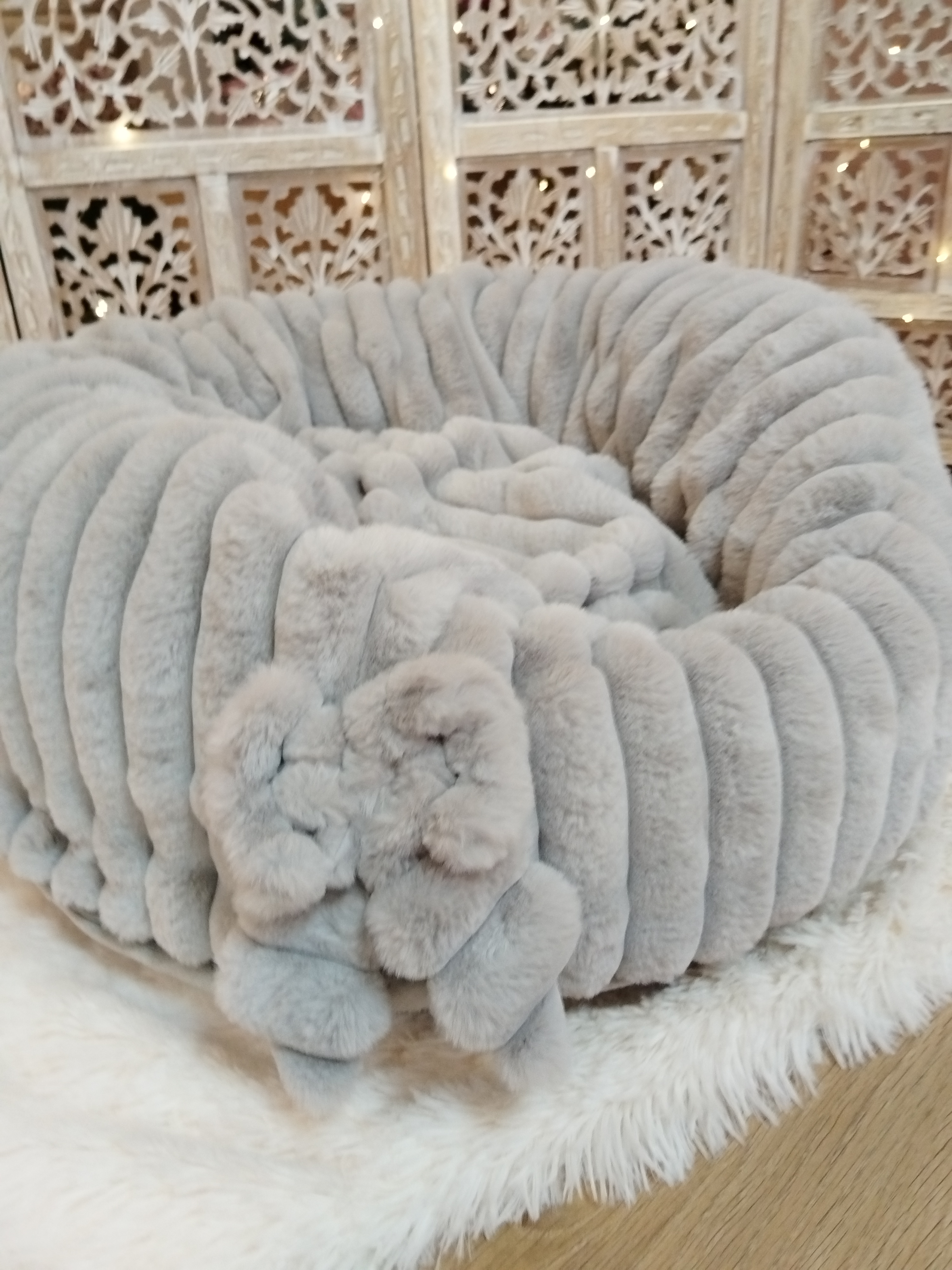 Entièrement confectionnée en fourrure côtelée, douce et moelleuse - Fond extérieur en minky