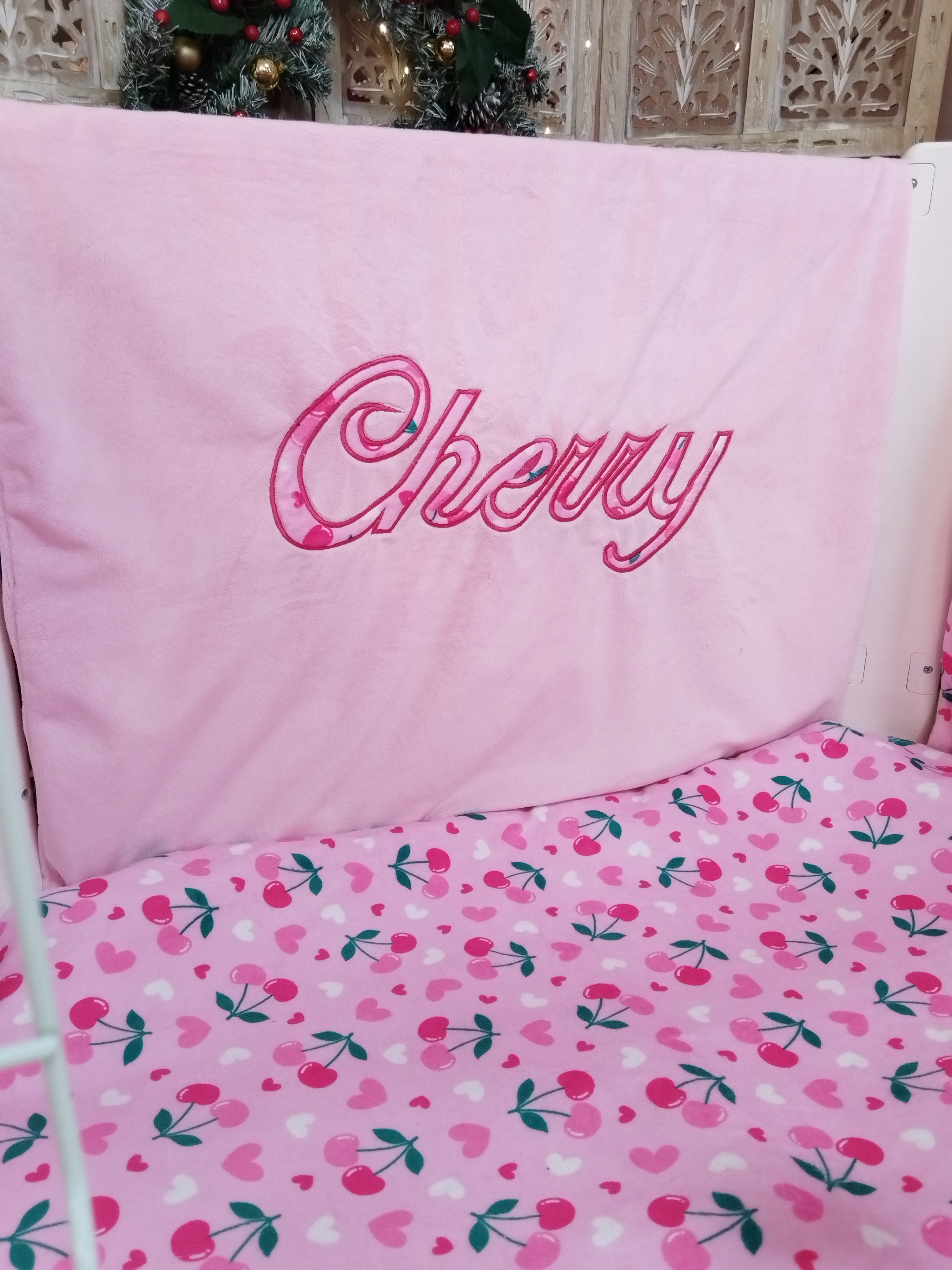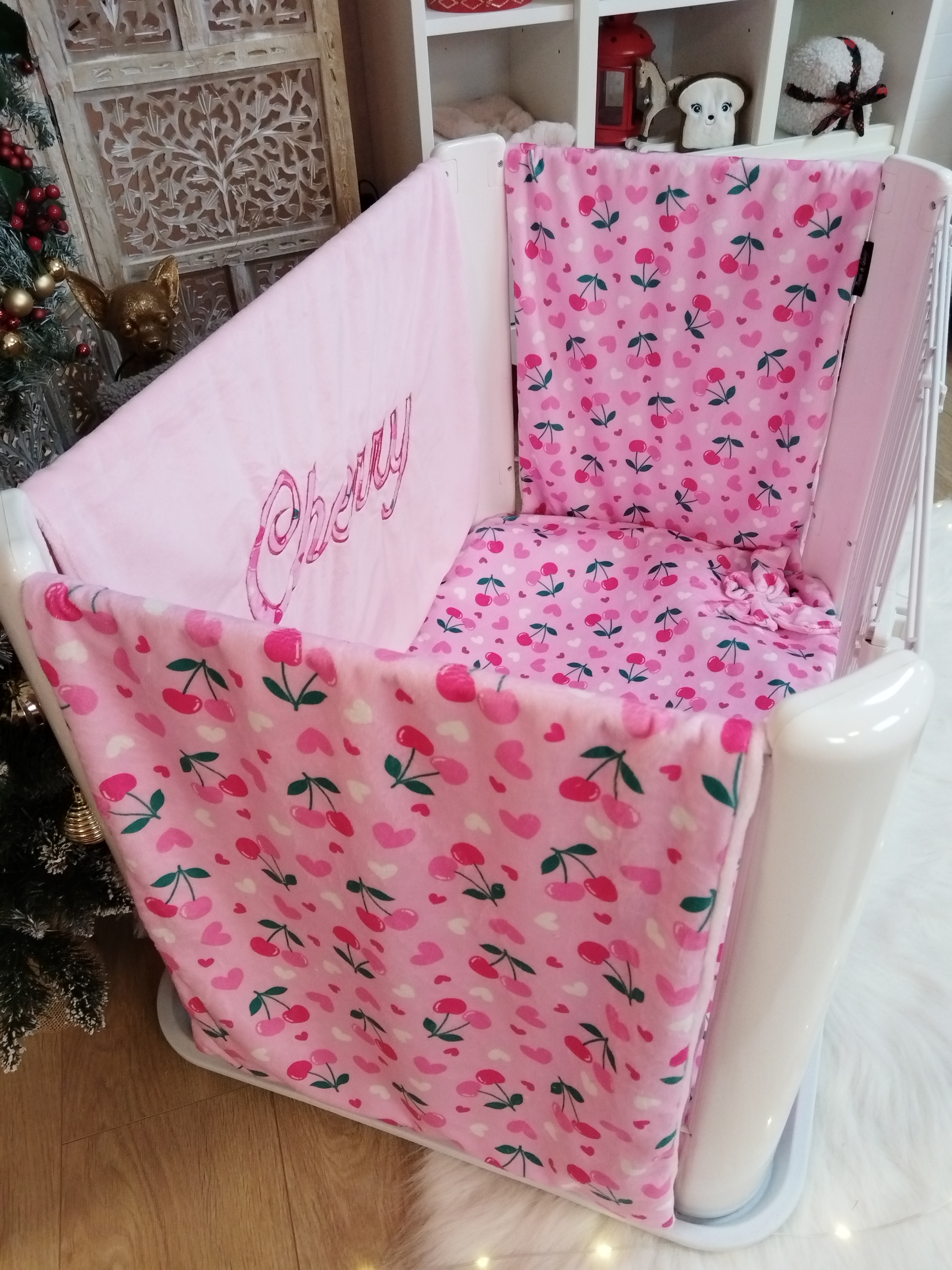• 1 grand panneau : recouvre l’intérieur et l’extérieur de la grande longueur du parc - Rose avec Broderie Cherry