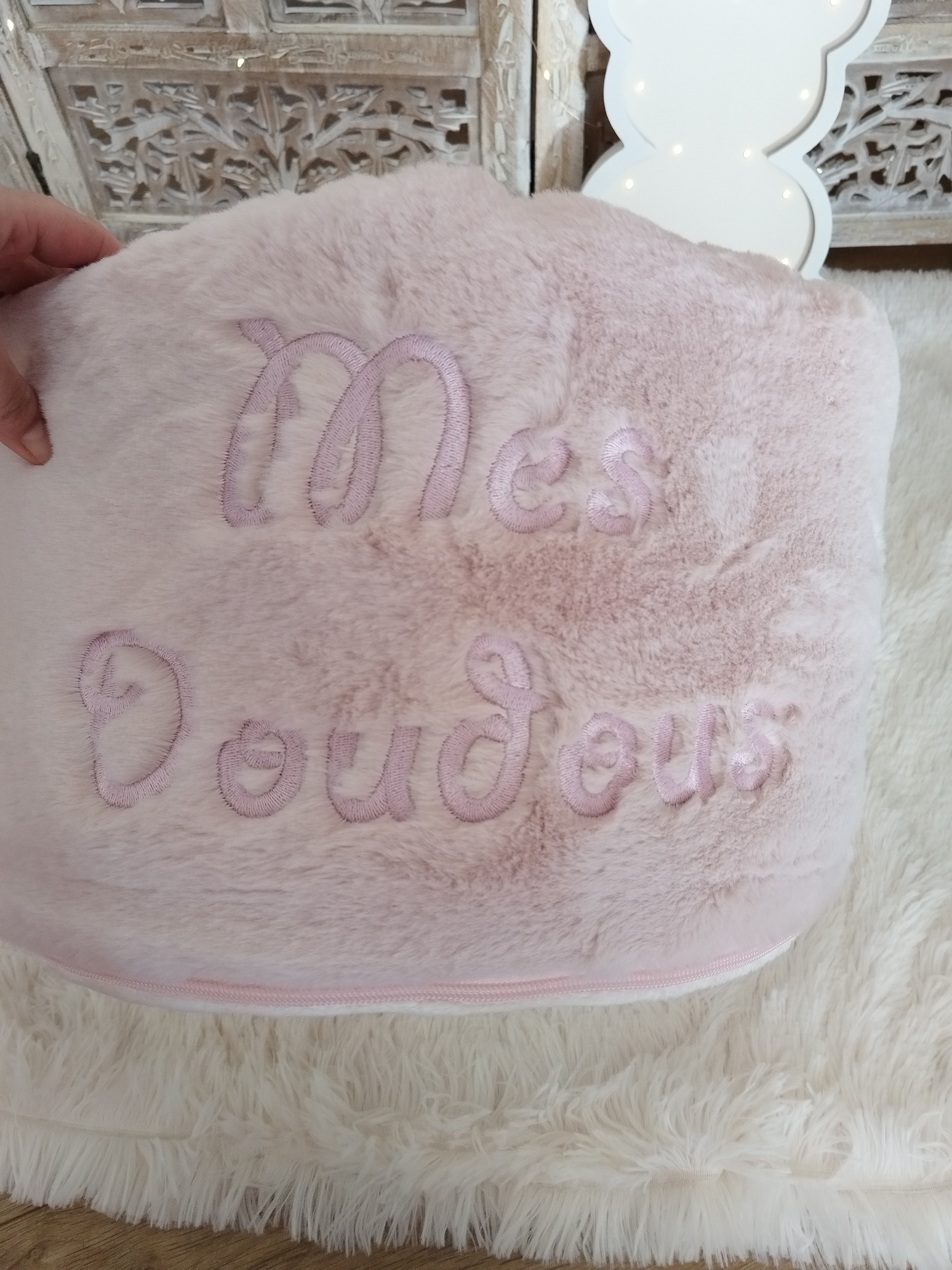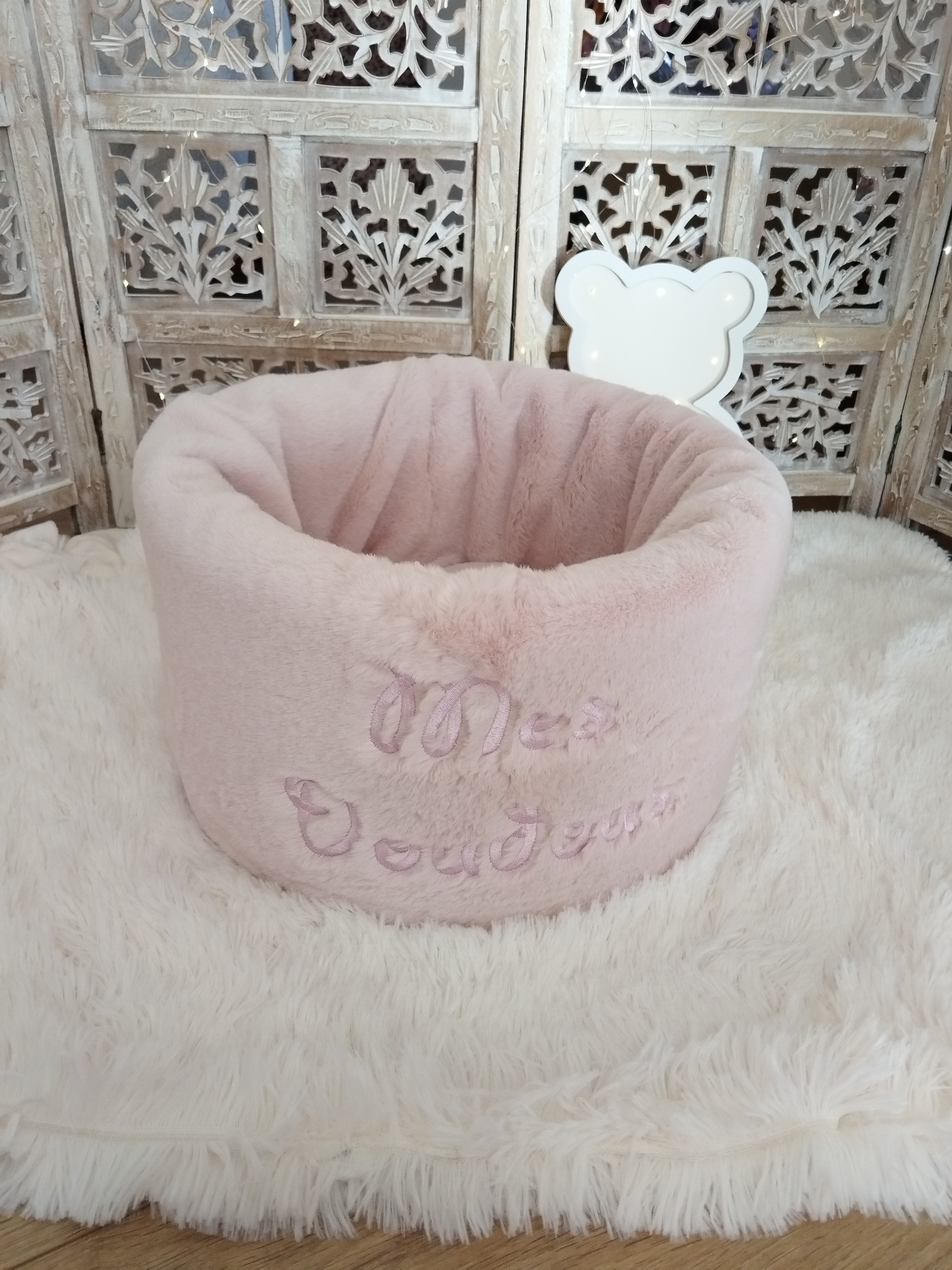 Entièrement confectionnée en fourrure , douce et moelleuse - Fond extérieur en minky