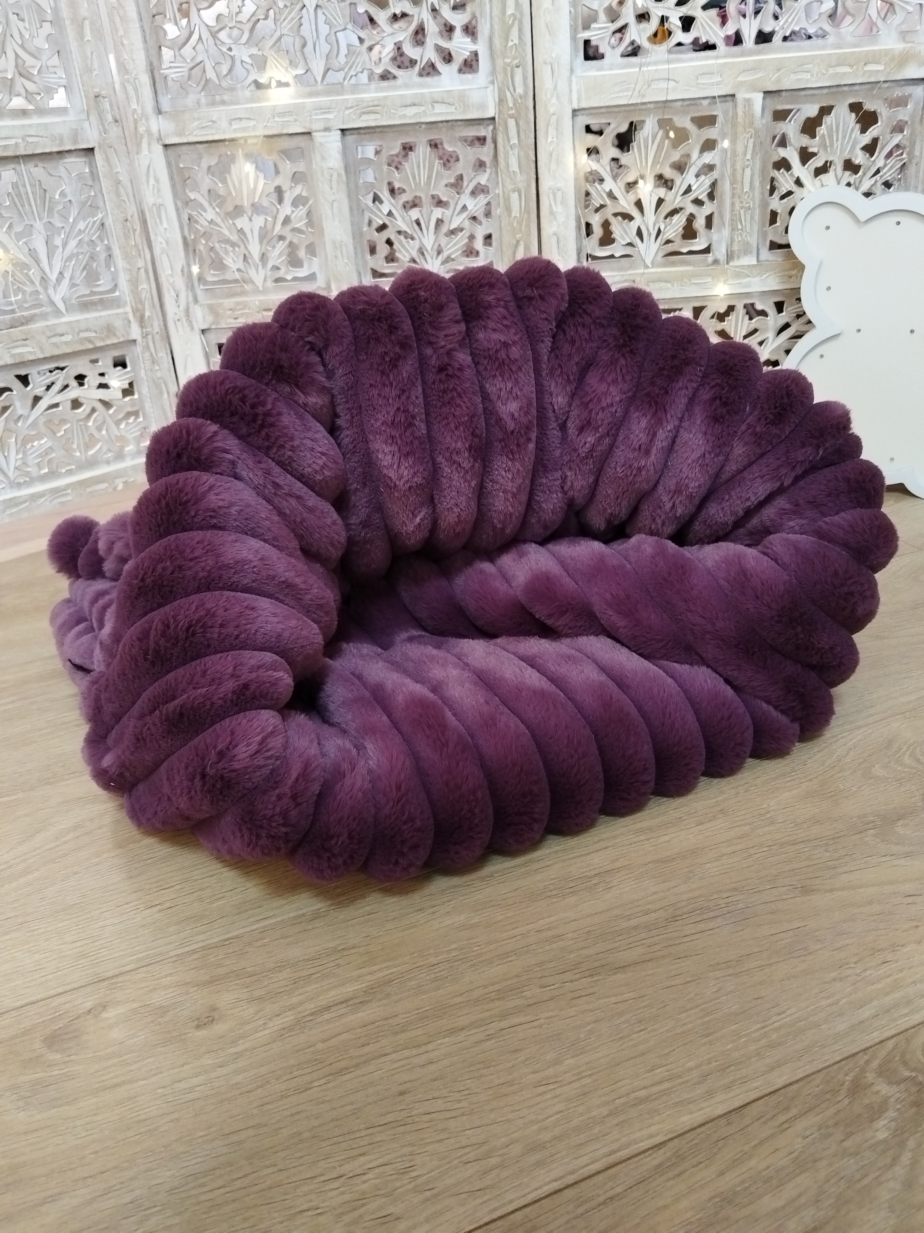 Entièrement confectionnée en fourrure côtelée, douce et moelleuse