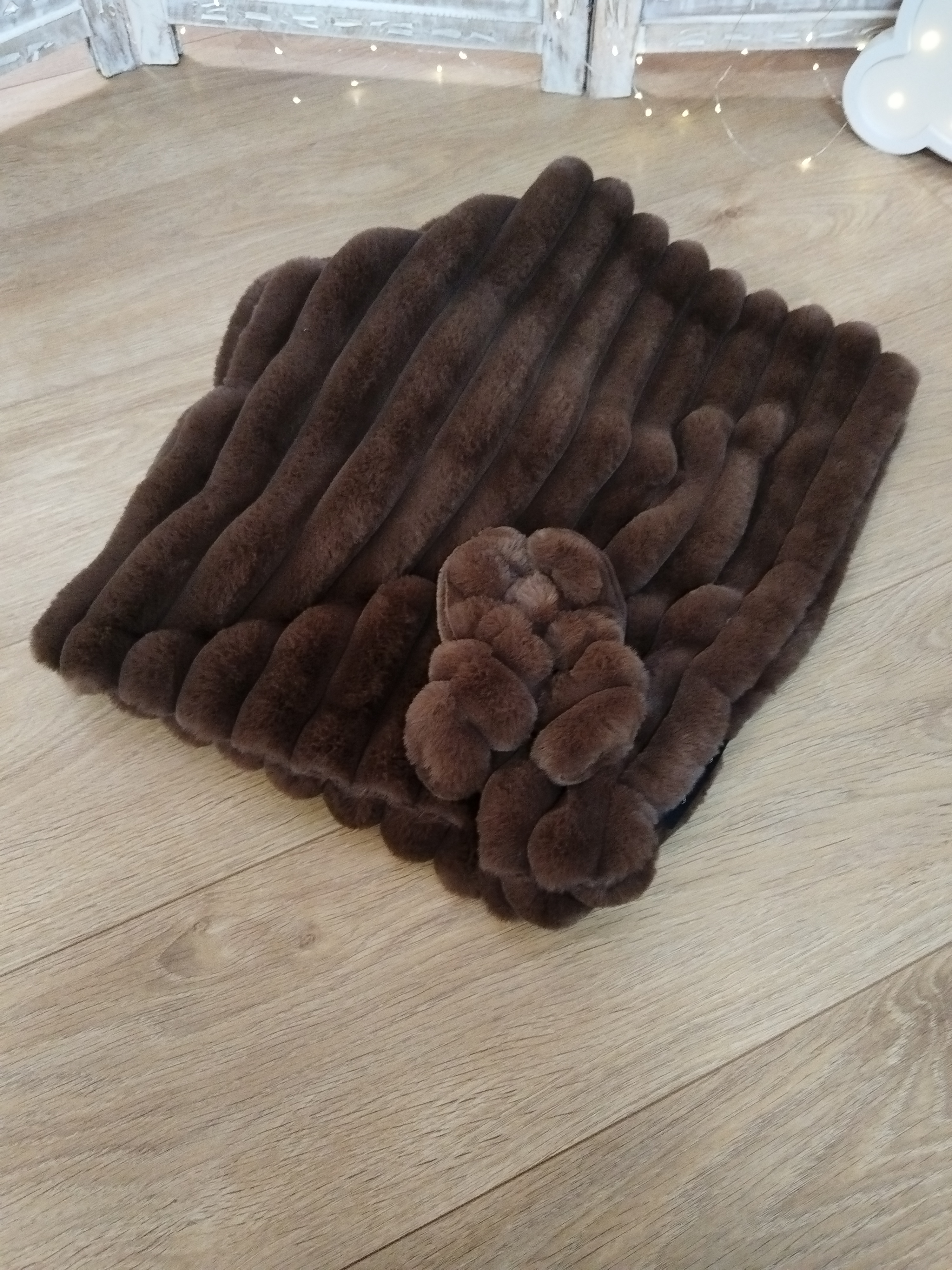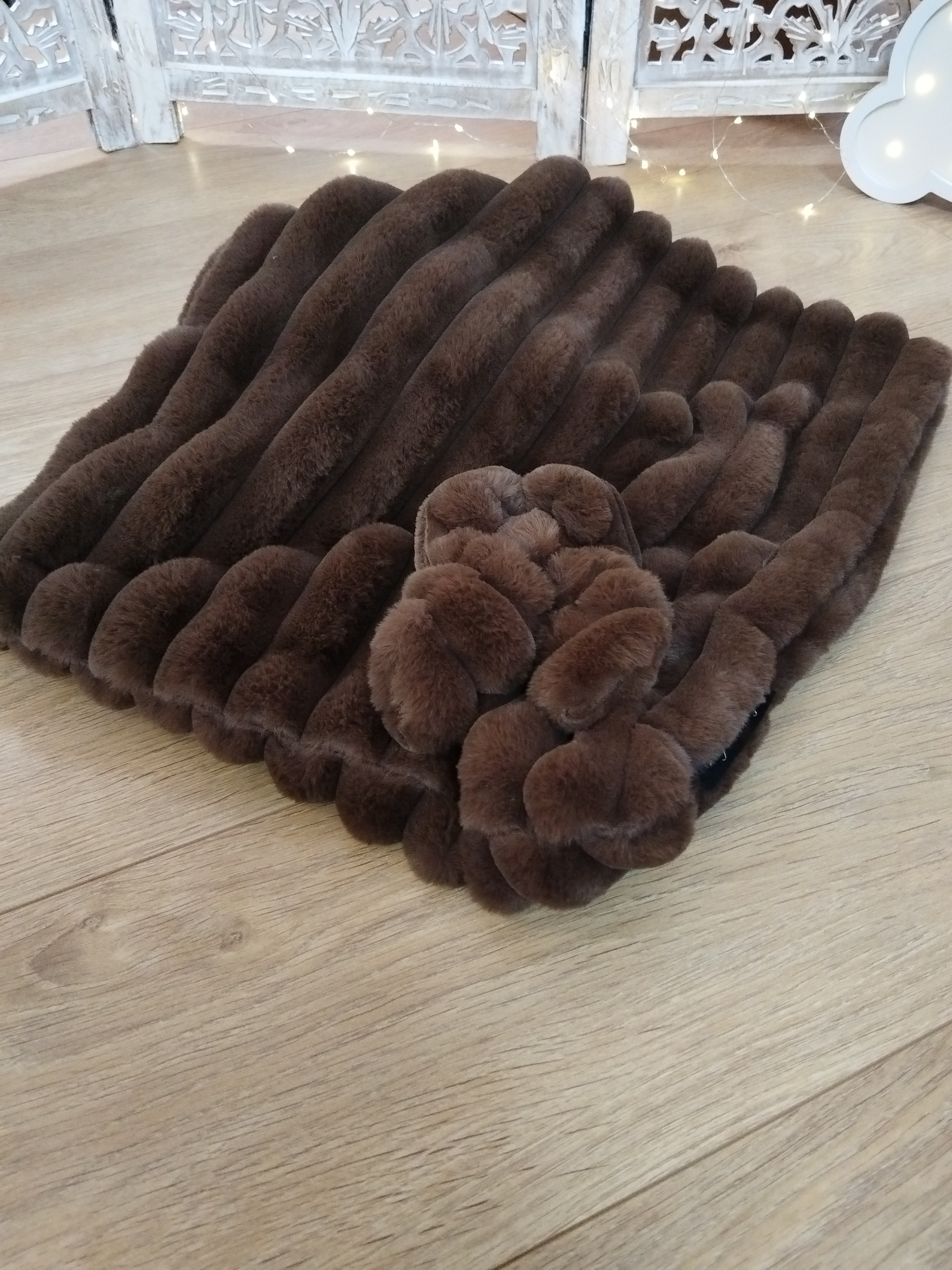 Entièrement confectionnée en fourrure côtelée, douce et moelleuse