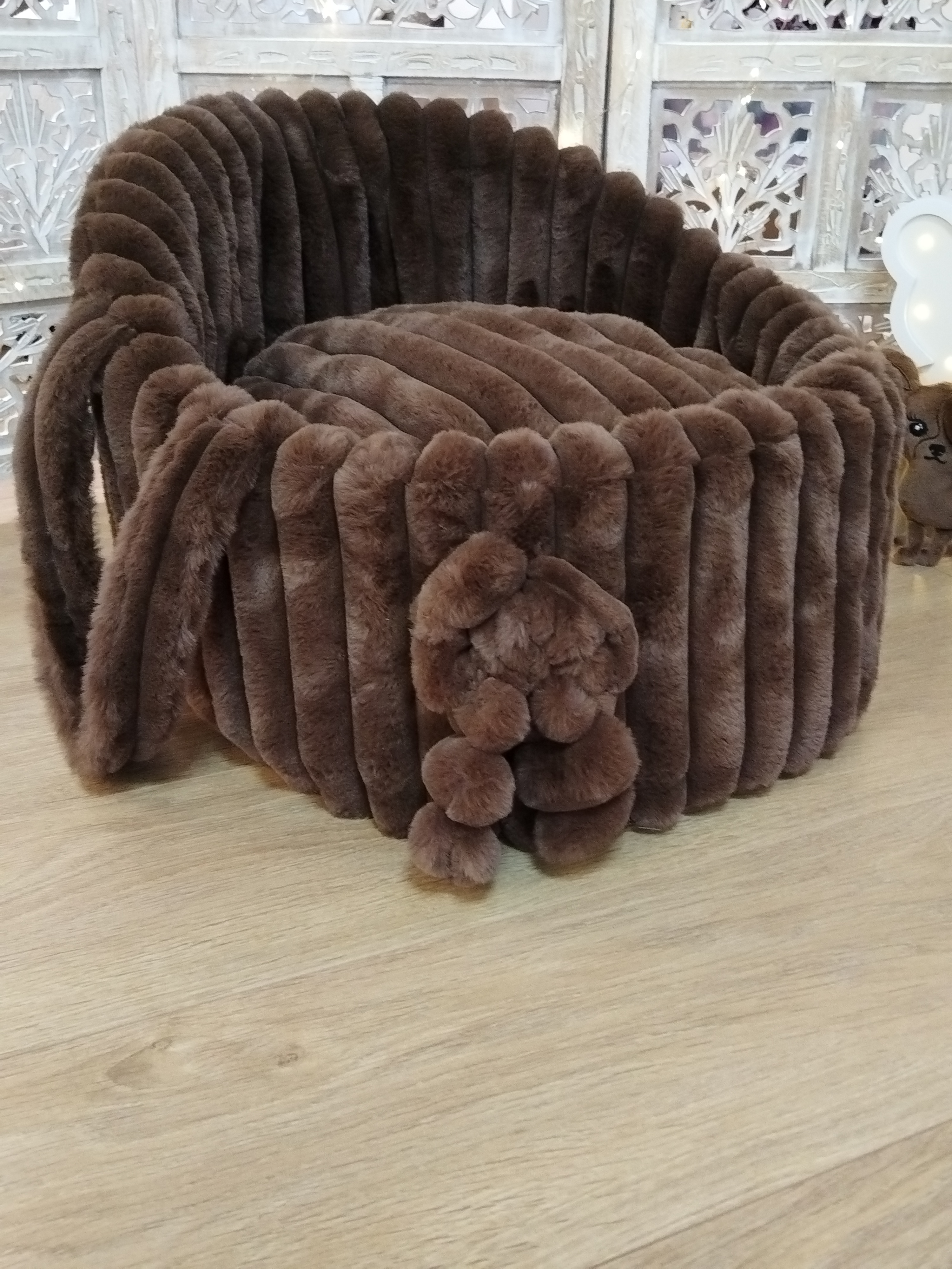 Entièrement confectionnée en fourrure côtelée, douce et moelleuse