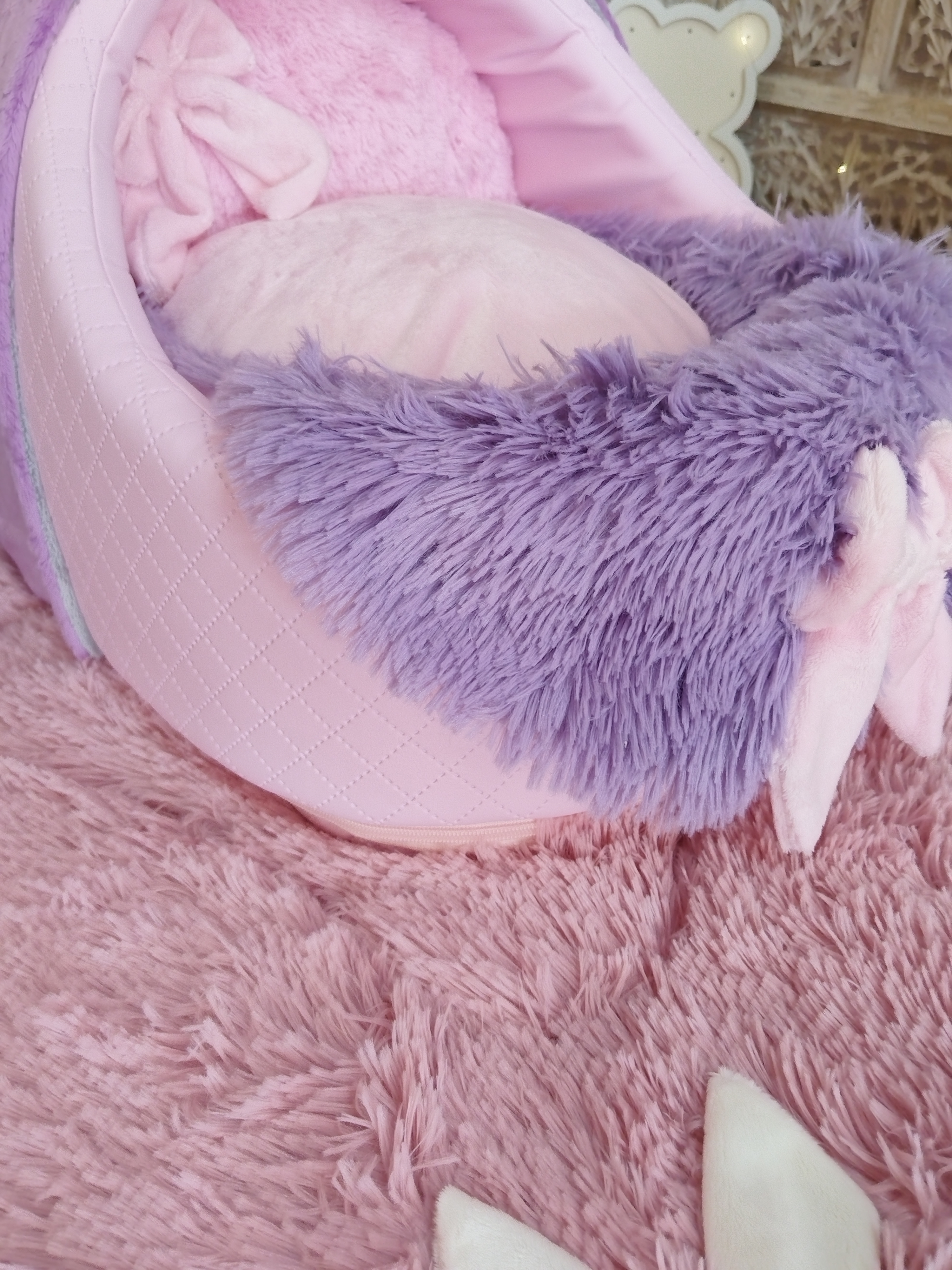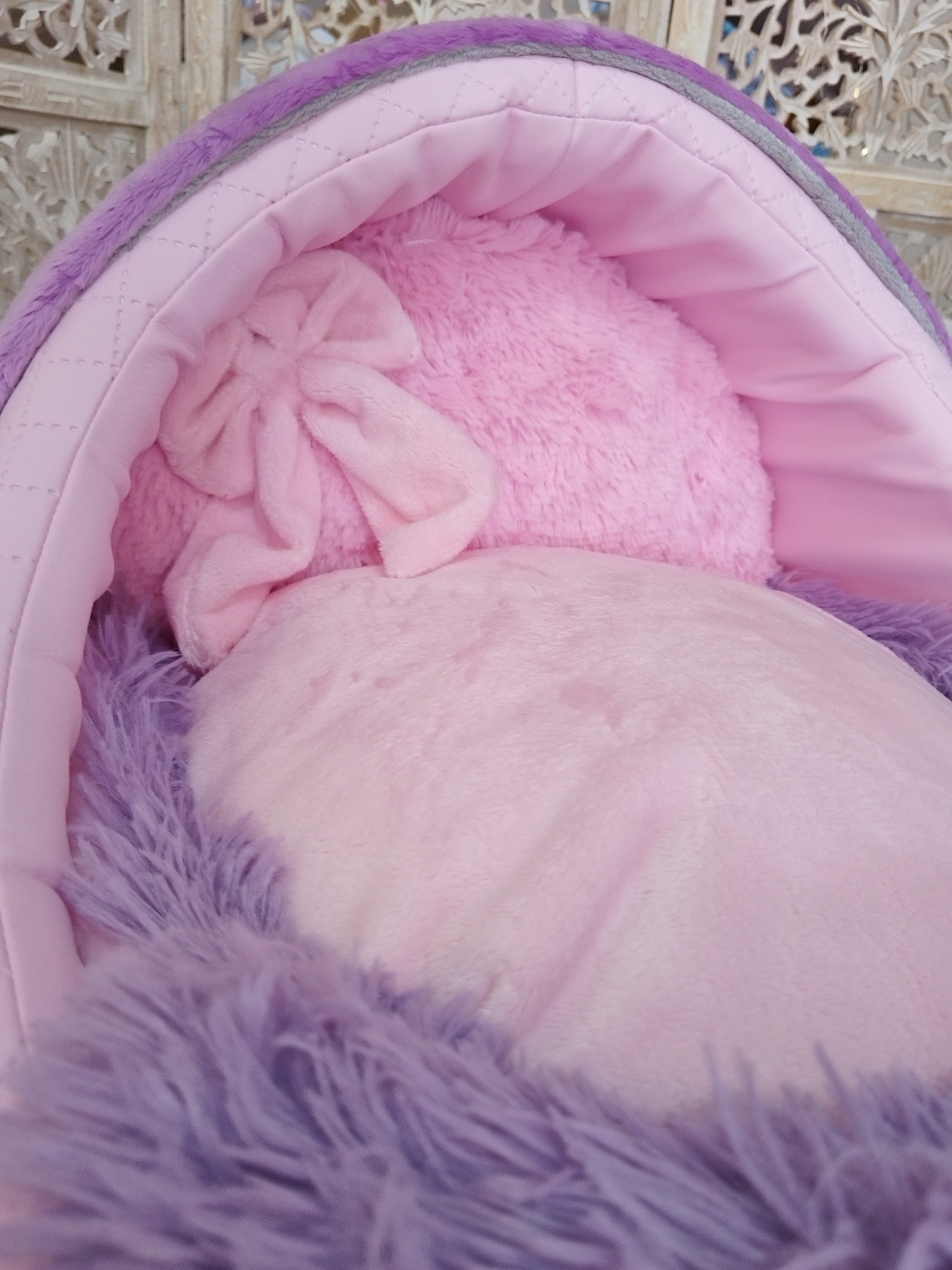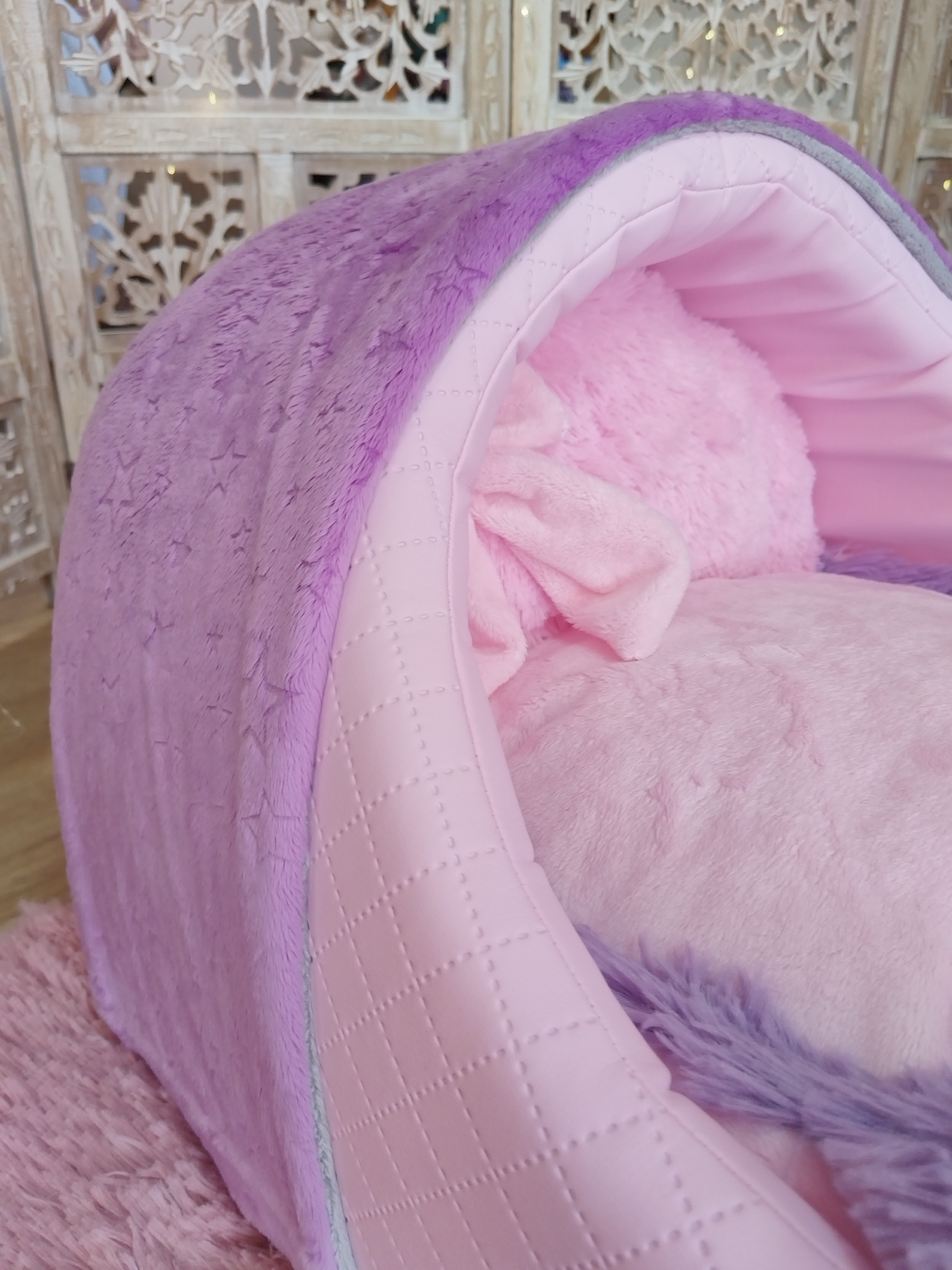 ✨ Cocoon en fourrure “La danse des saisons” – Lavande