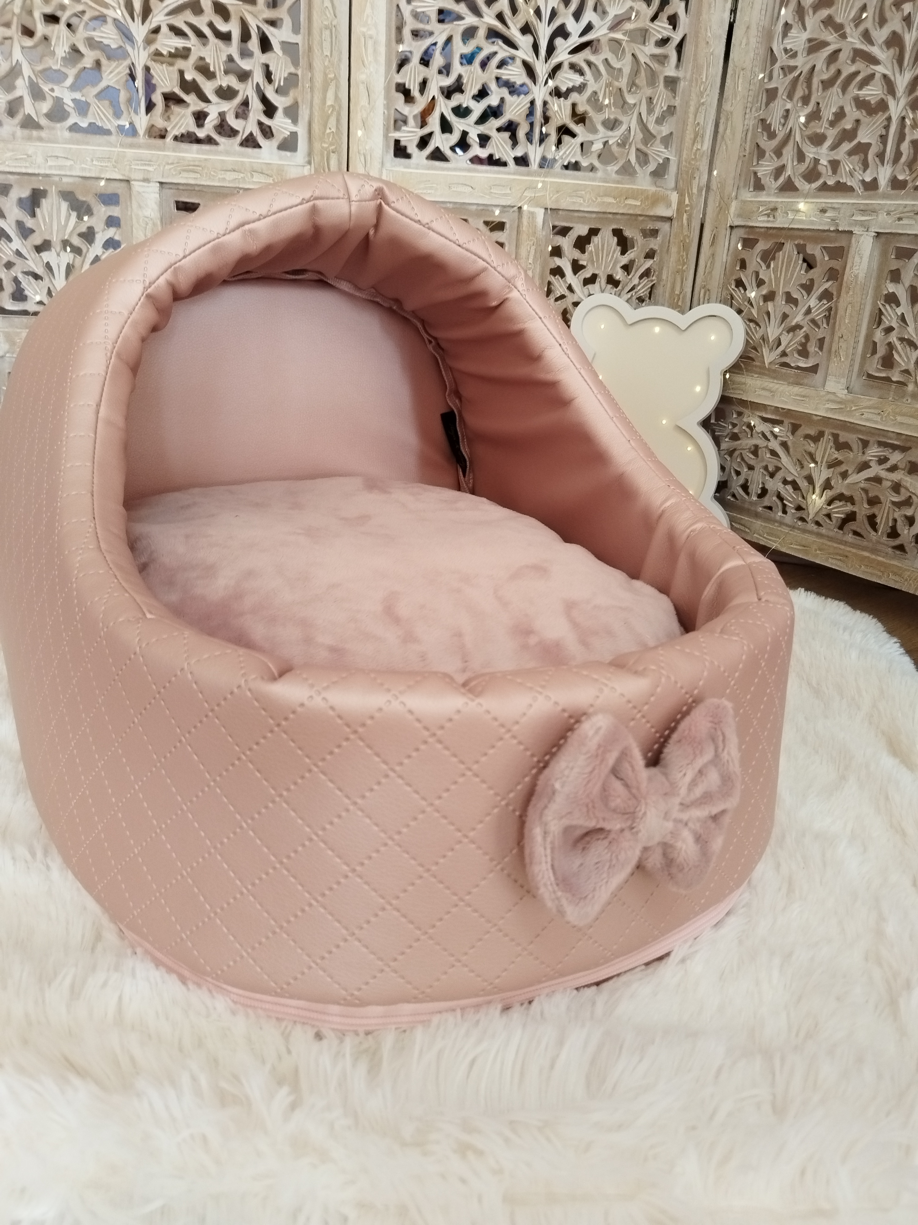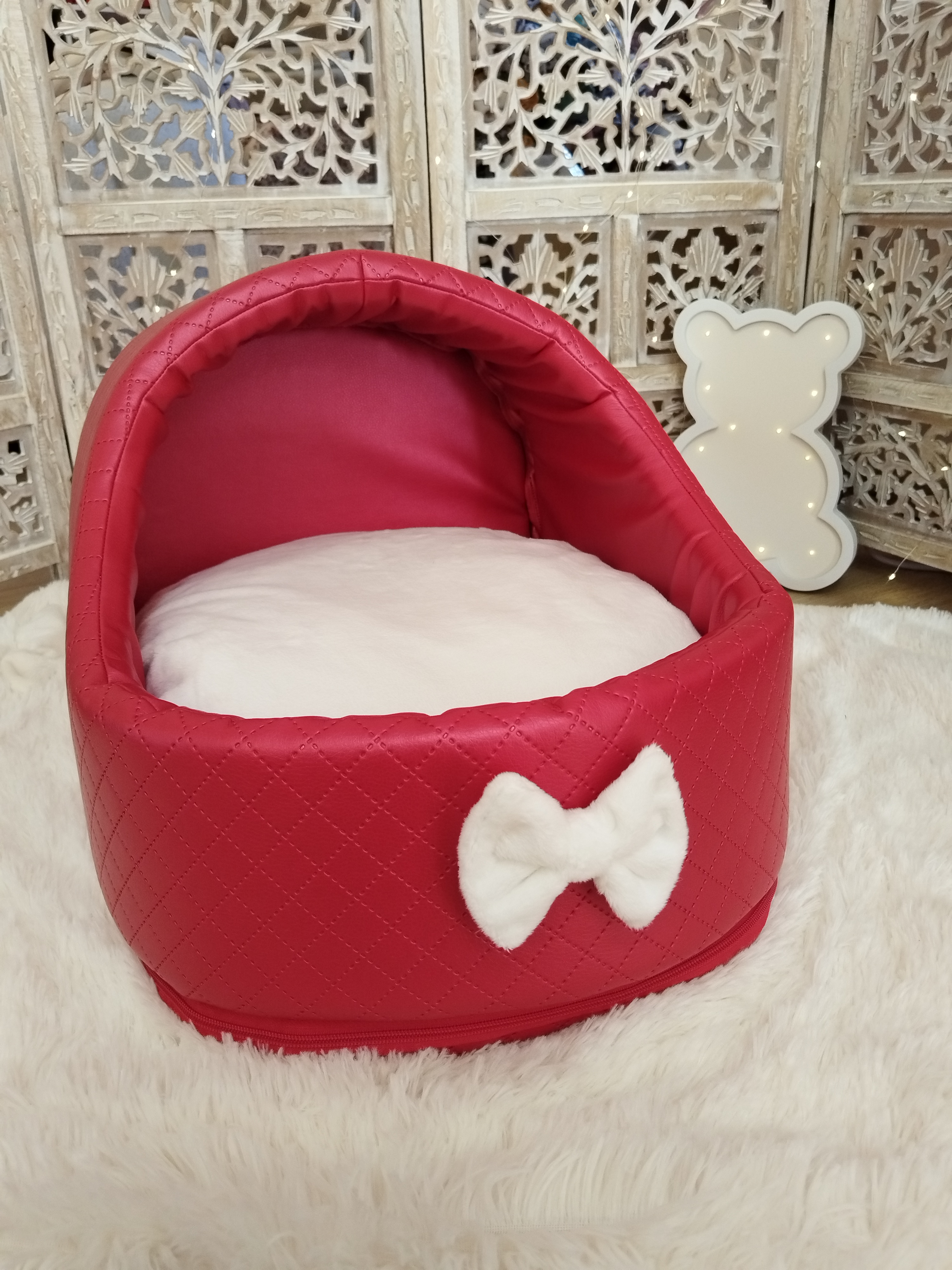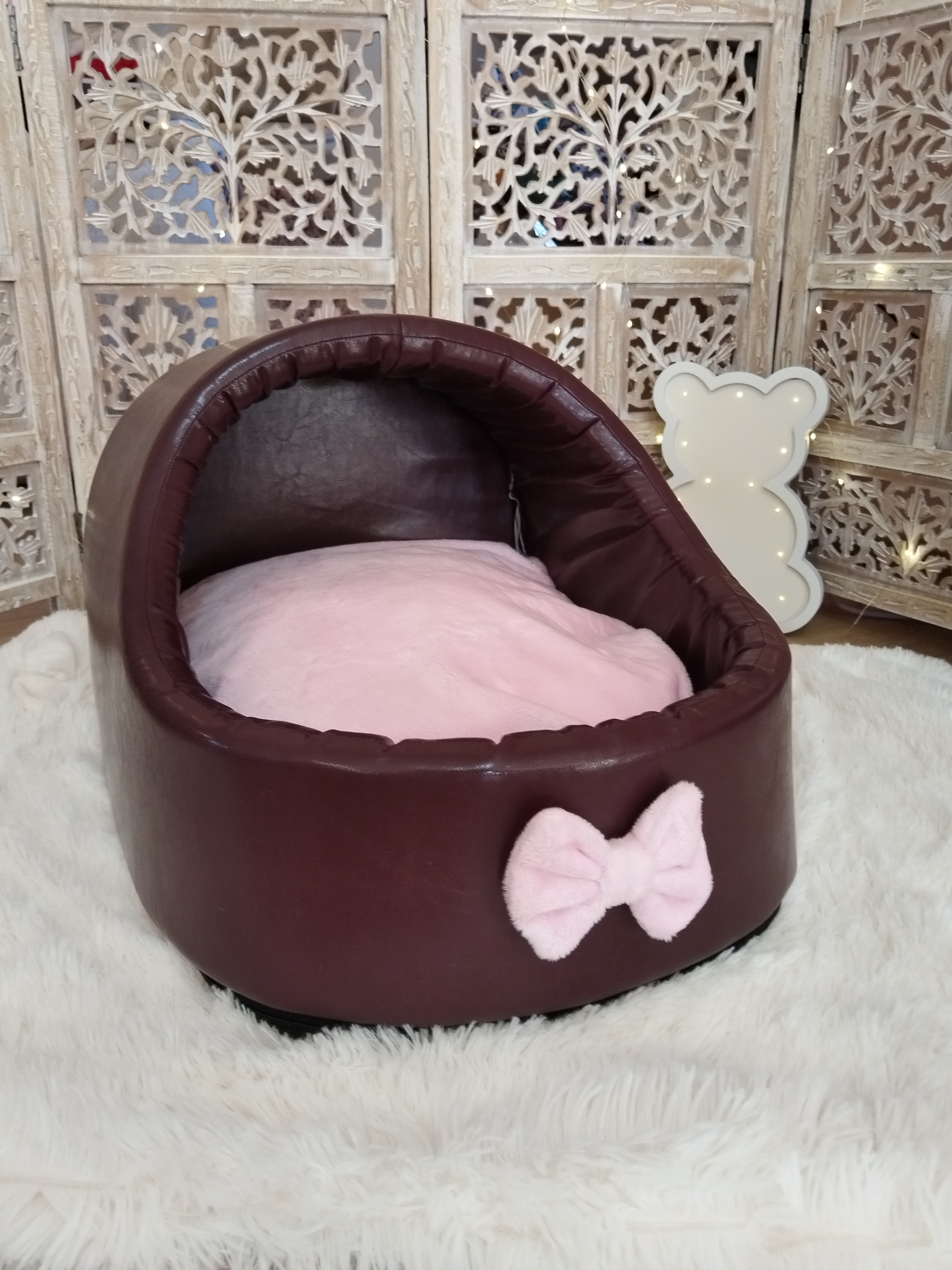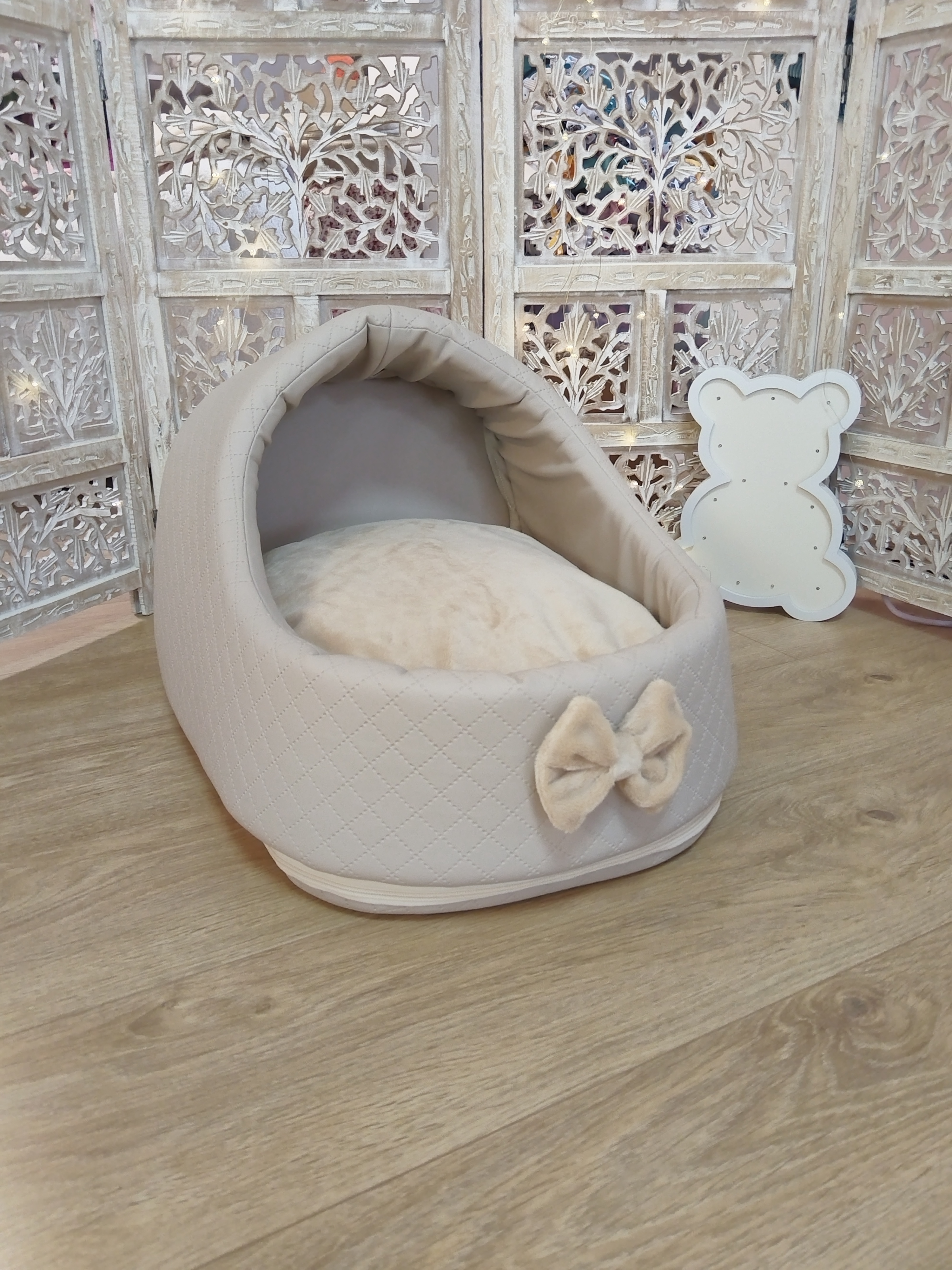 ✨ Modèle Softygloo Conçu pour les truffes qui aiment se sentir protégées, tout en gardant leur petit monde à vue 🤍 ⚜️ Matières • Structure en simili cuir • Coussin en coton • Housse et nœud en...