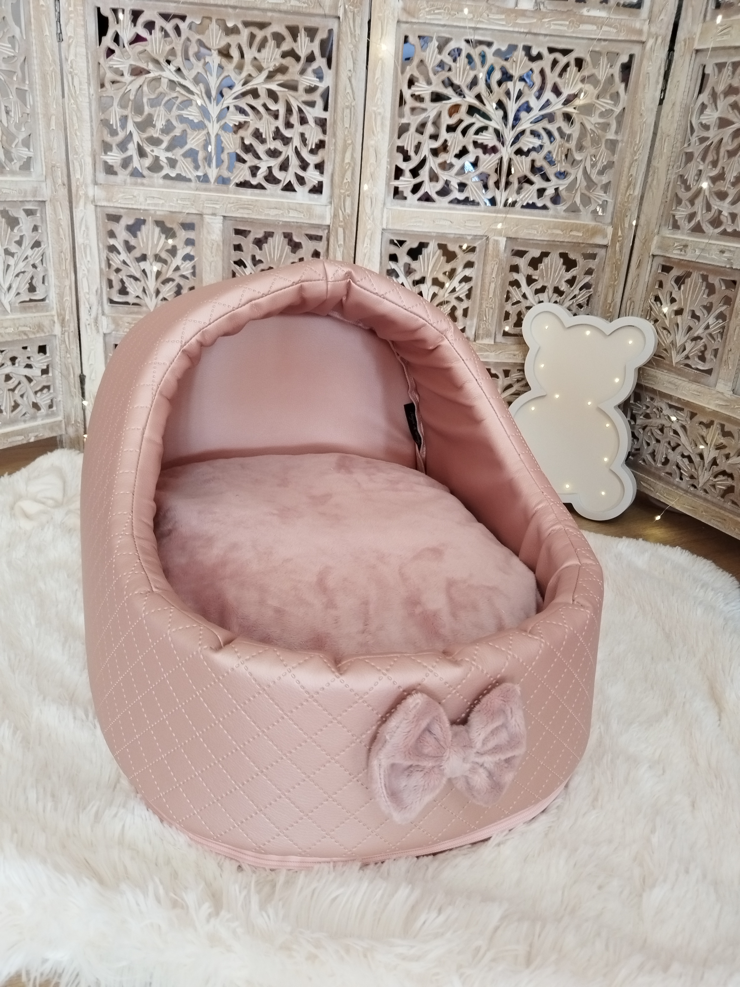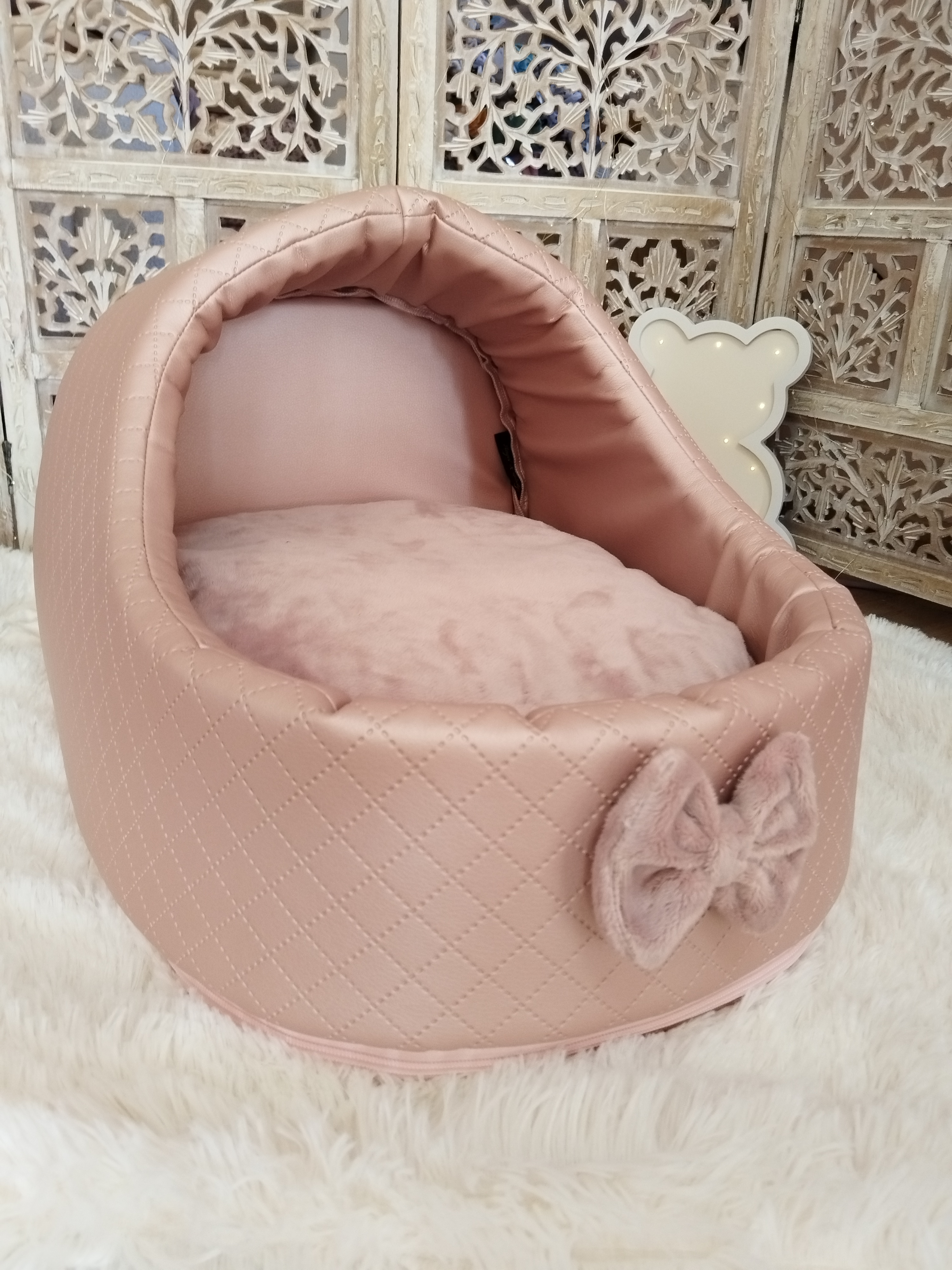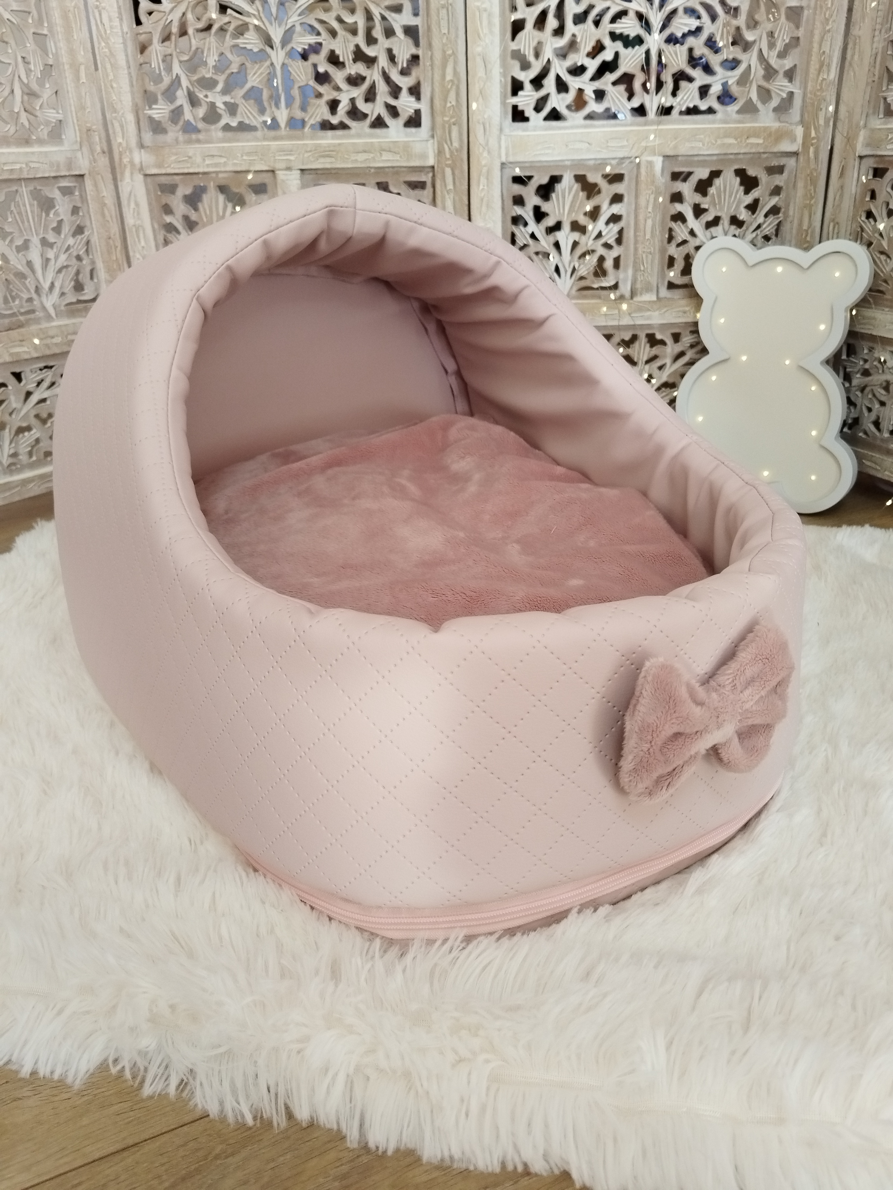 ✨ Modèle Softygloo Conçu pour les truffes qui aiment se sentir protégées, tout en gardant leur petit monde à vue 🤍 ⚜️ Matières • Structure en simili cuir • Coussin en coton • Housse et nœud en...