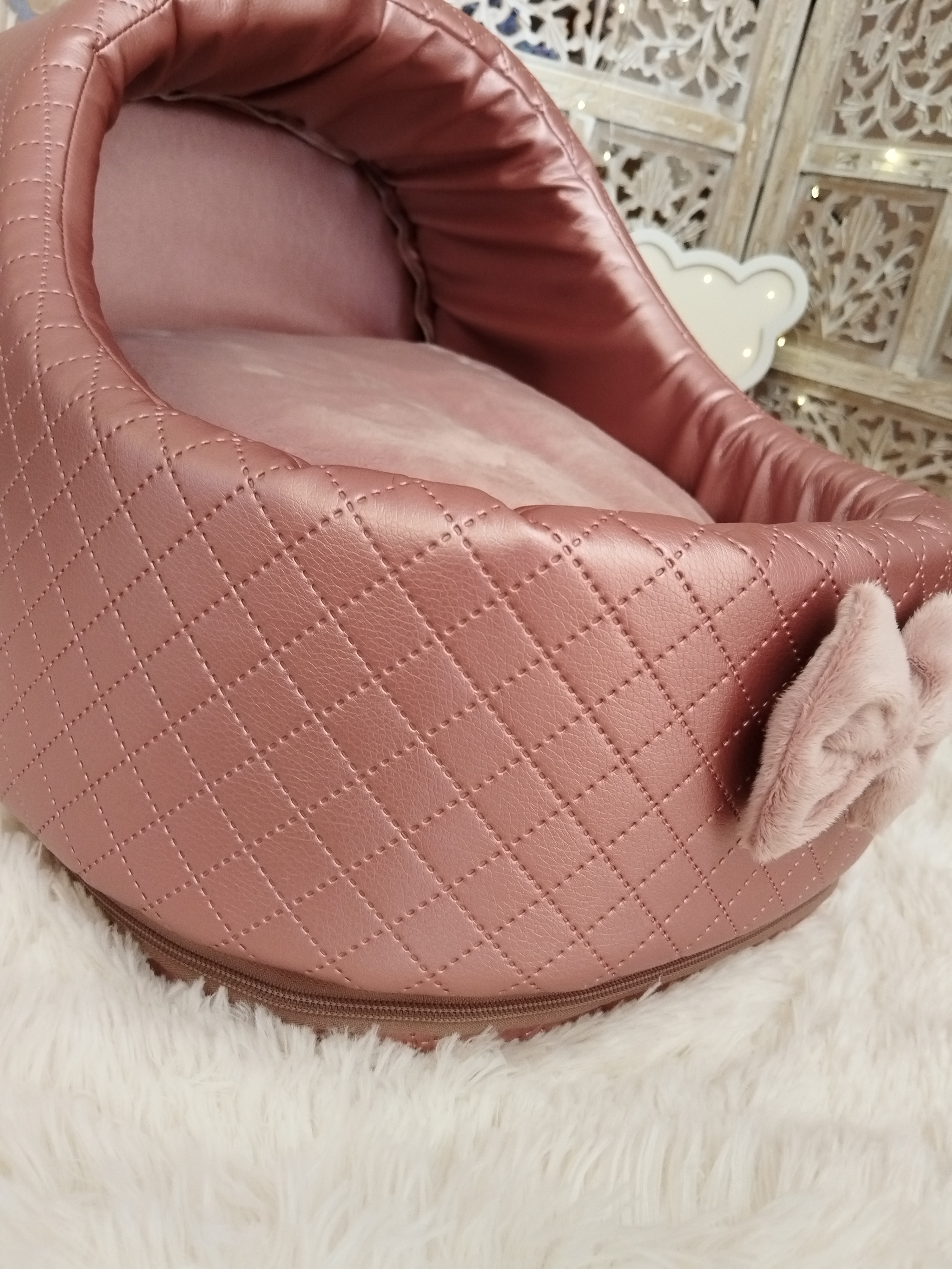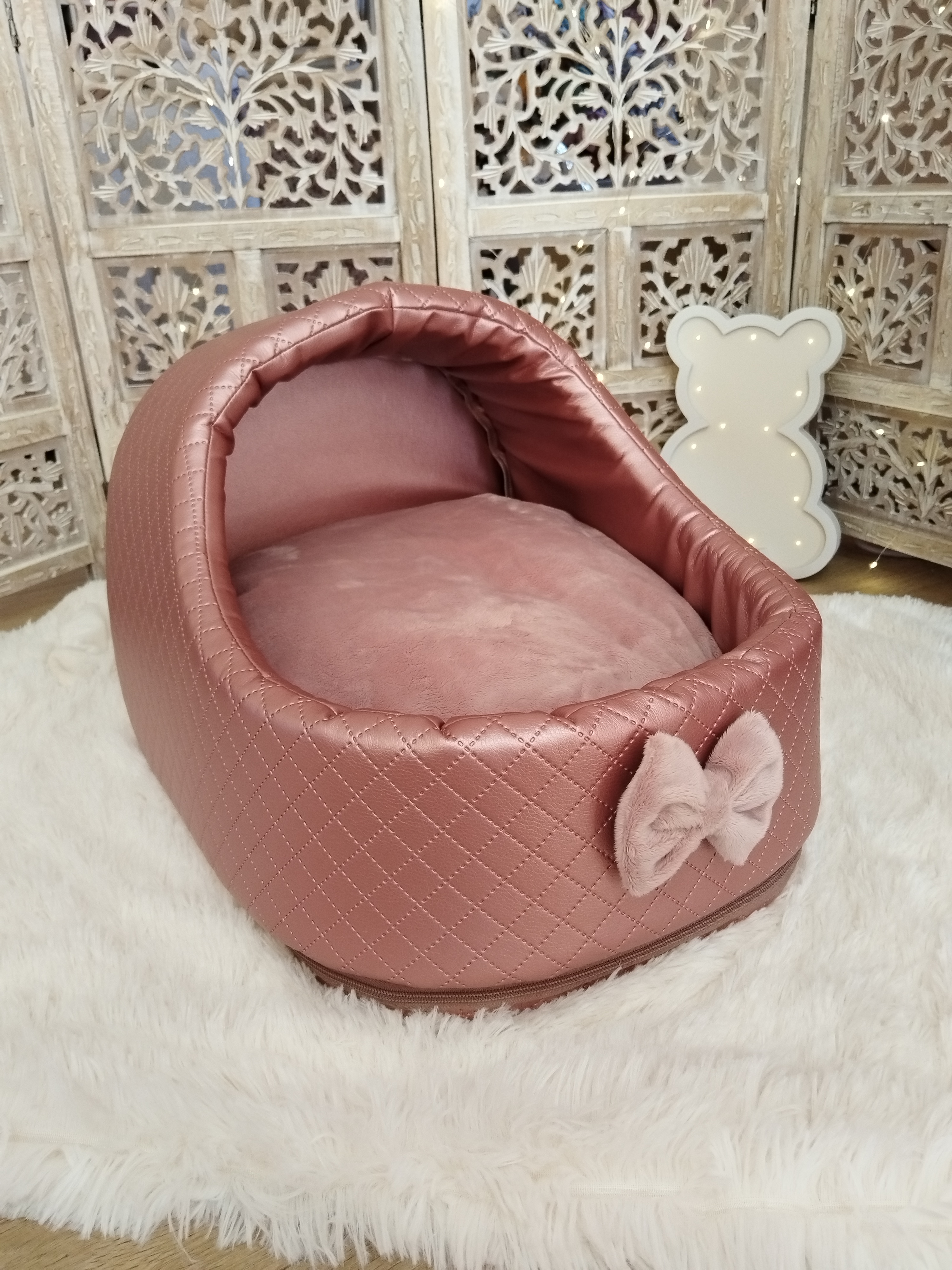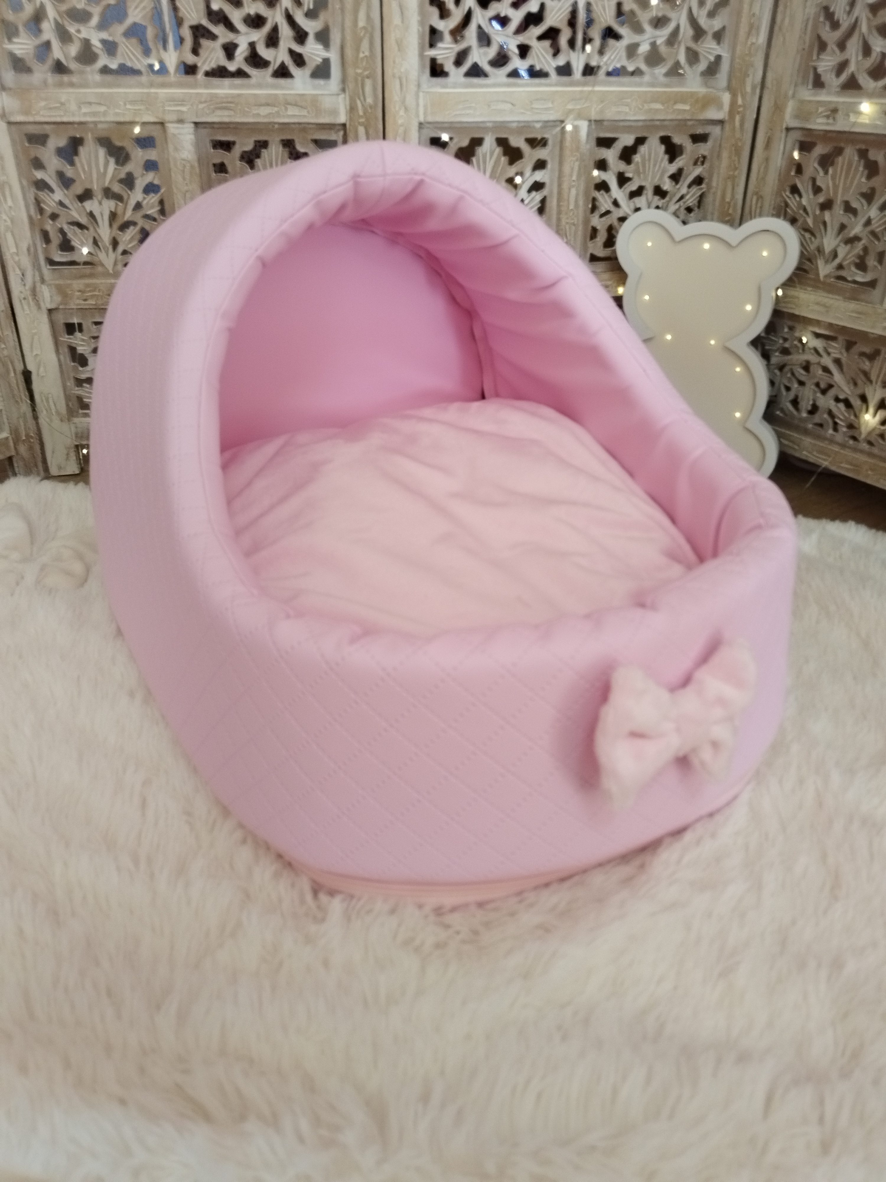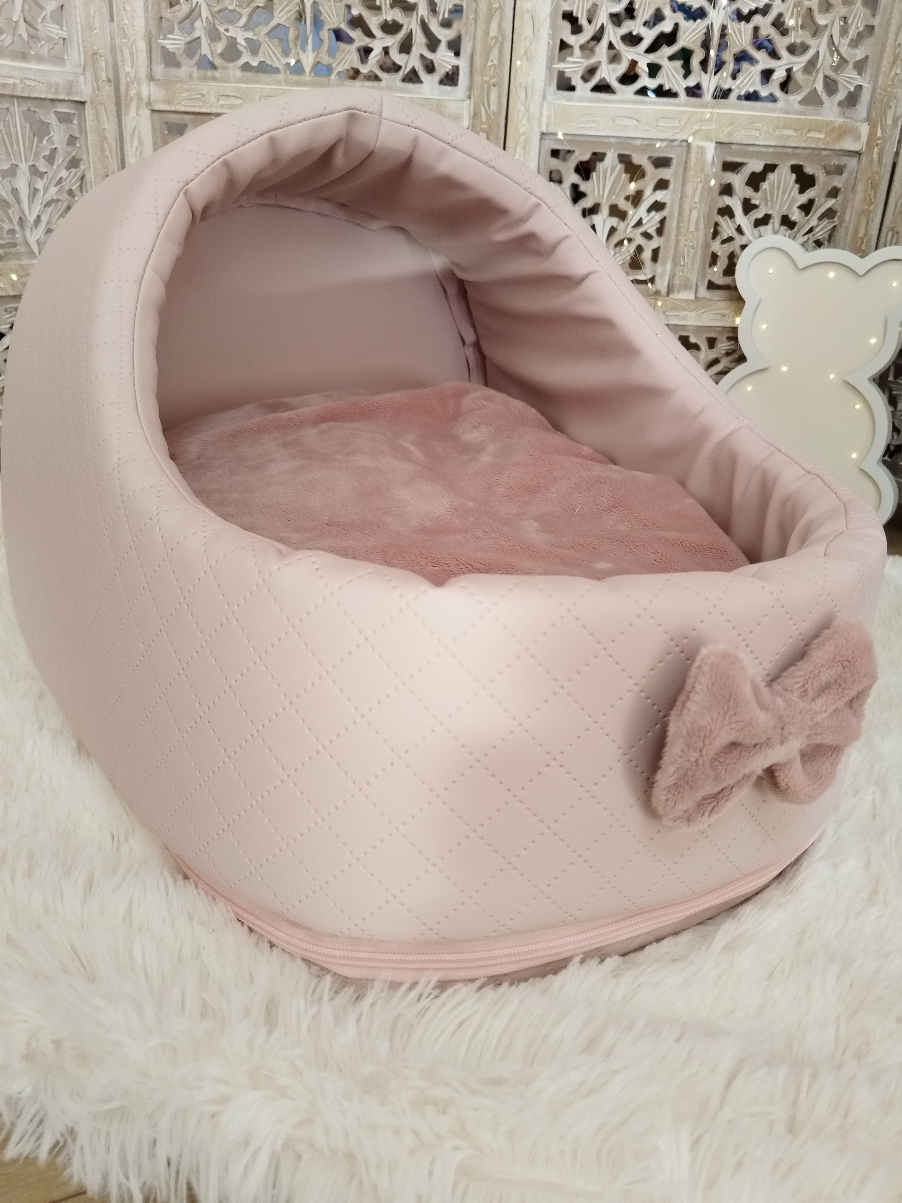 ✨ Modèle Softygloo Conçu pour les truffes qui aiment se sentir protégées, tout en gardant leur petit monde à vue 🤍 ⚜️ Matières • Structure en simili cuir • Coussin en coton • Housse et nœud en...