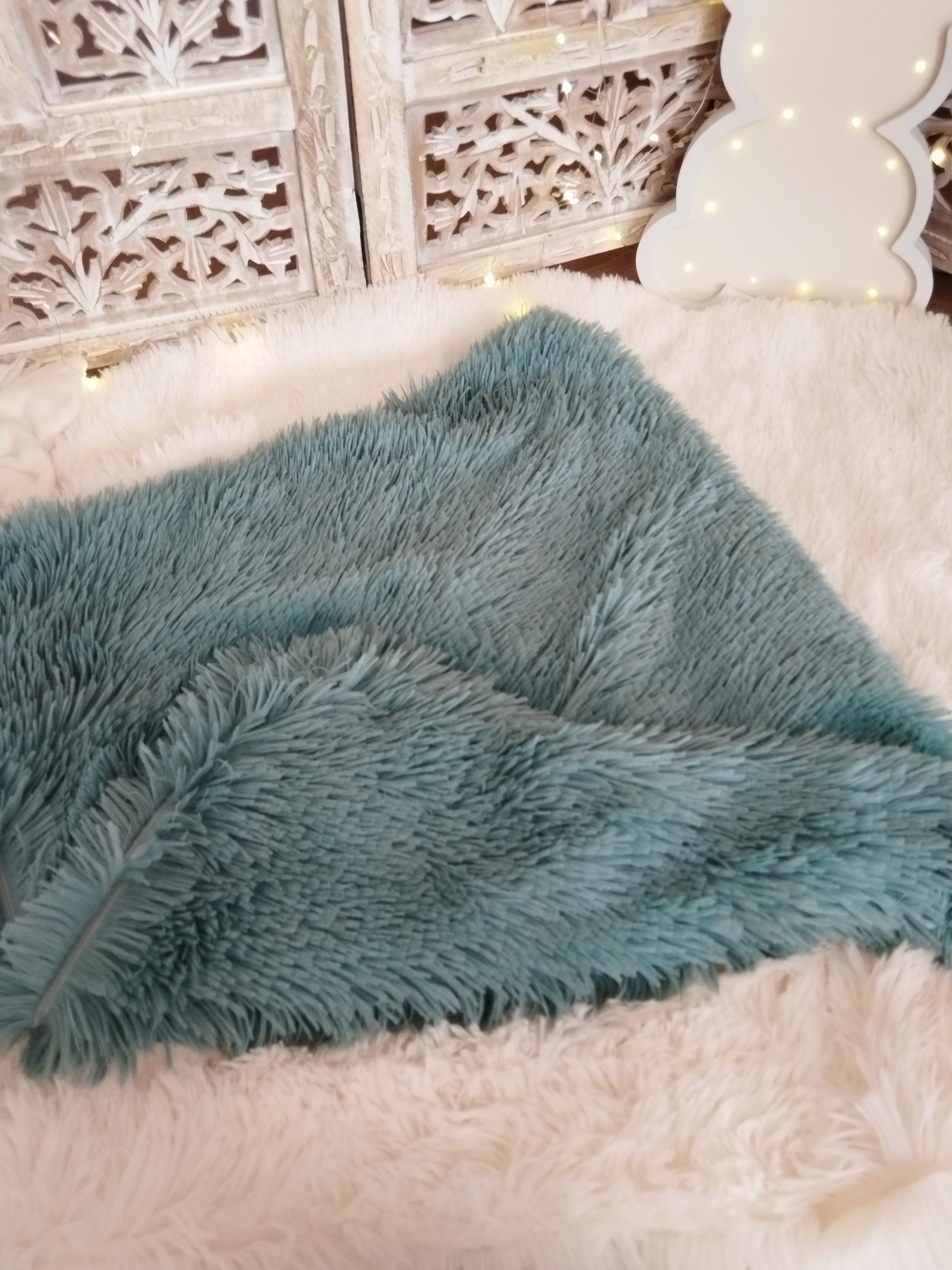 ✨ Modèle Housse pour coussin (selon modèle) 🎨 Couleur Dans les teintes turquoise ⚜️ Matière Fourrure douce 📏 Dimensions Maison : environ 35 × 45 cm Divan T1 : environ 40 × 40 cm Divan T2 : environ...