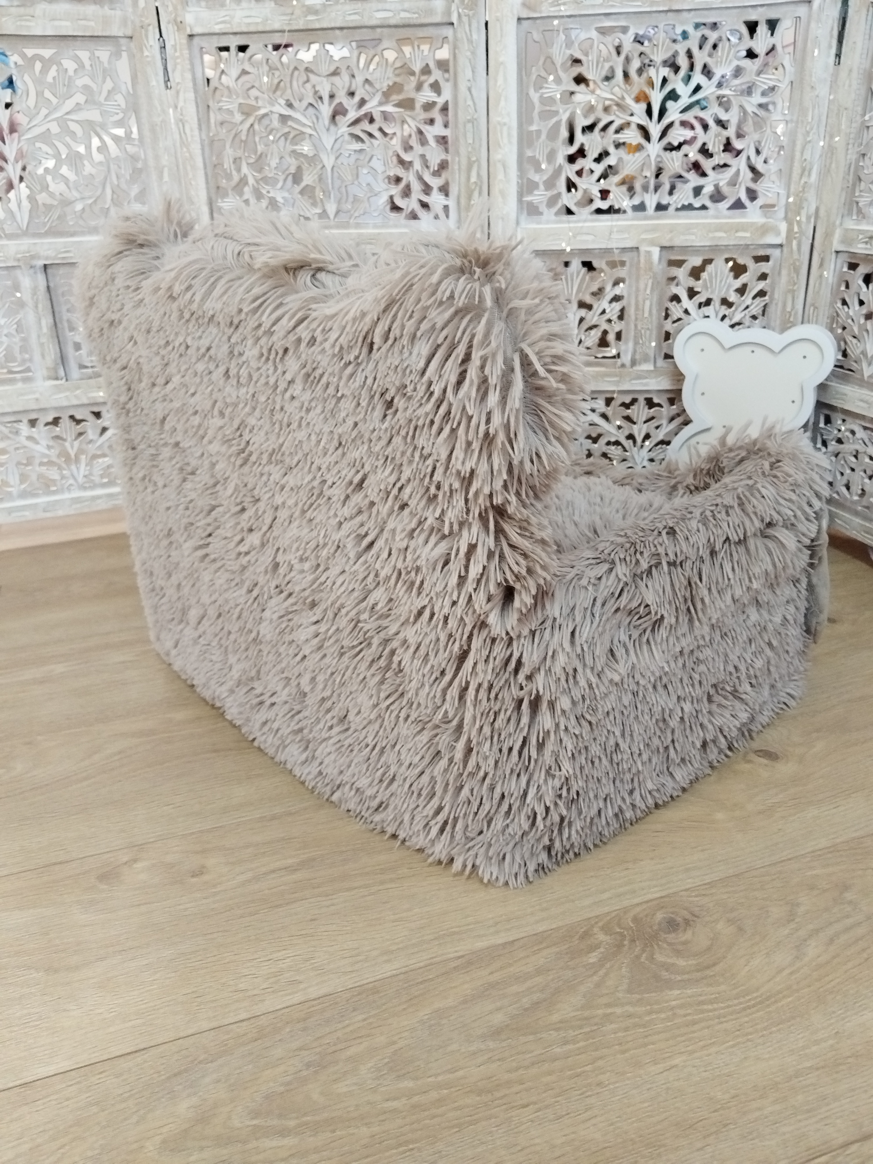 ✨ Modèle Housse pour Cute Teddy 🎨 Couleur Dans les teintes Creme Vanille ⚜️ Matière Confectionnée en fourrure longue et minky 📏 Dimension Adaptée au Cute Teddy Angel & Gladys 🌸 Détail Nœuds Bonheur...