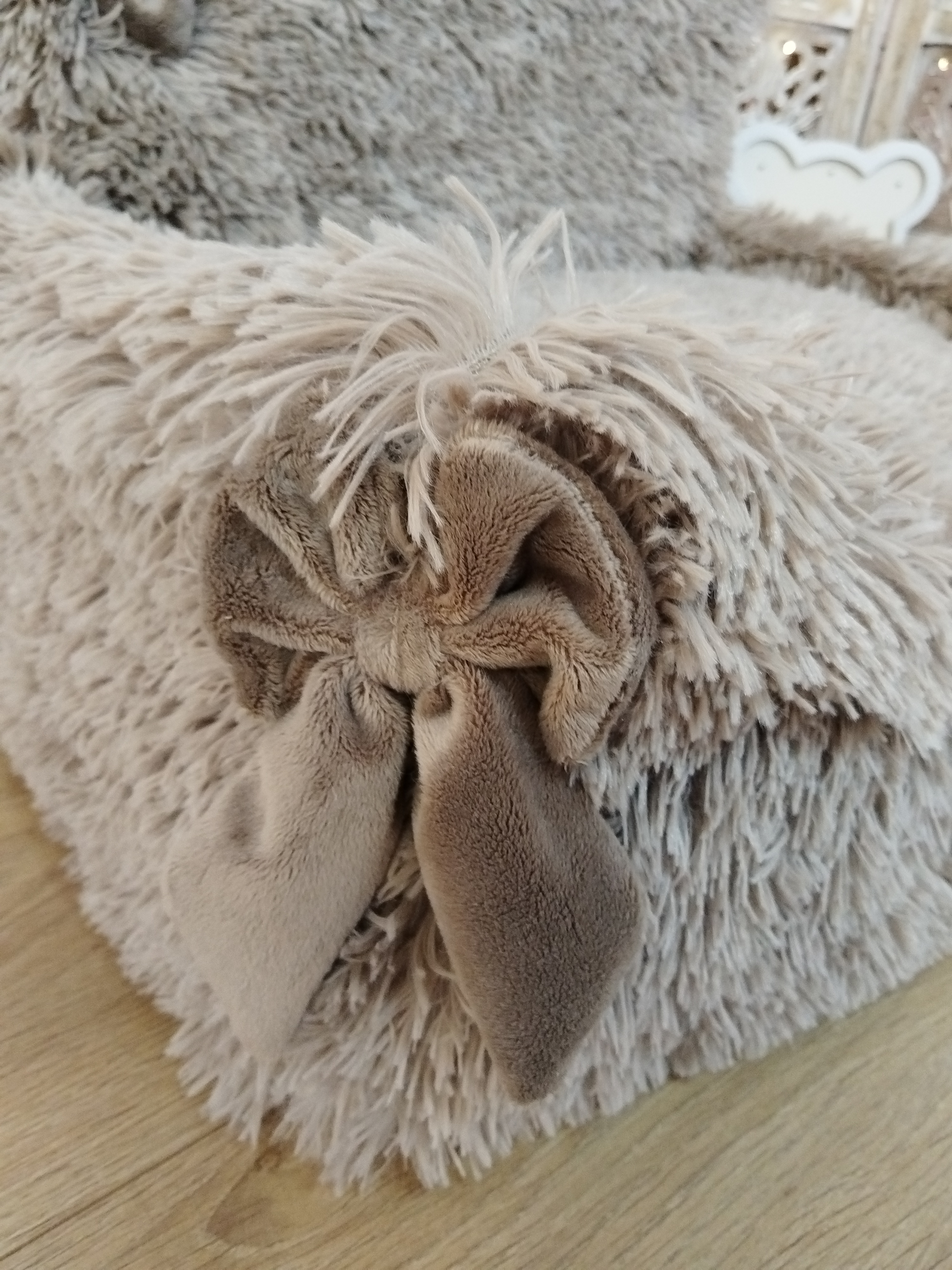 ✨ Modèle Housse pour Cute Teddy ⚜️ Matière Fourrure et minky 📏 Dimension Adaptée au Cute Teddy Angel & Gladys 🌸 Détail Nœuds Bonheur cousus. La housse du coussin est fournie avec la housse...