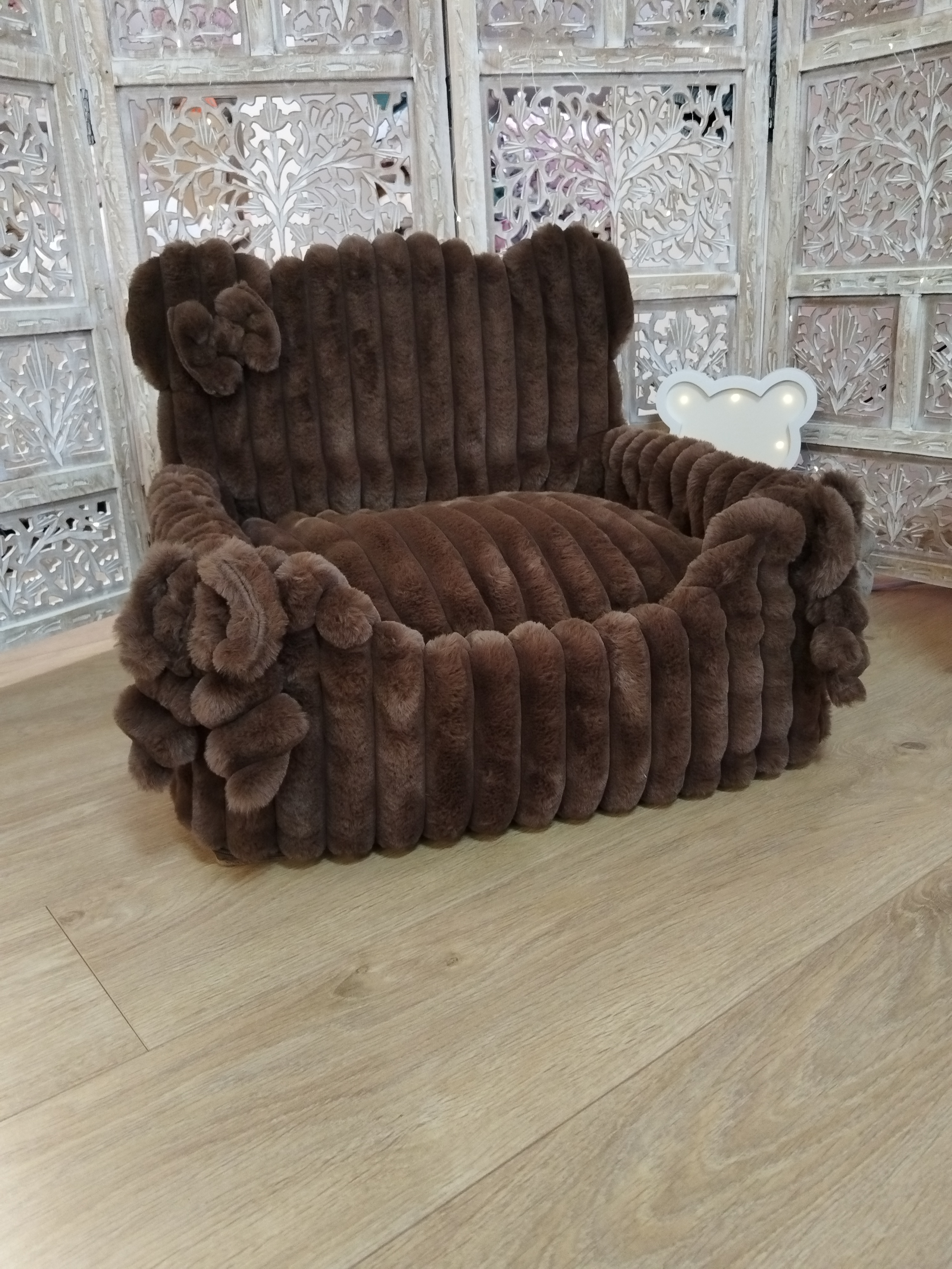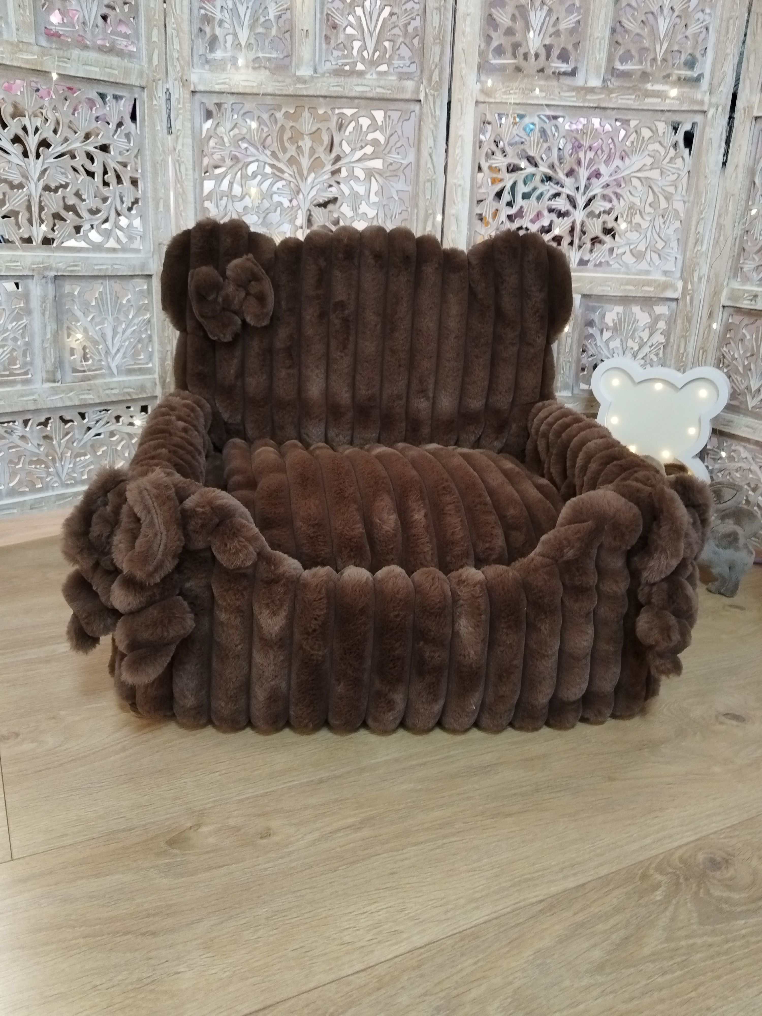 ✨ Modèle Housse pour Cute Teddy 🎨 Couleur Dans les teintes Mocca Chocolat Coconut ⚜️ Matière Confectionnée en fourrure Bouclette. 📏 Dimension Adaptée au Cute Teddy Angel & Gladys 🌸 Détail Nœuds...