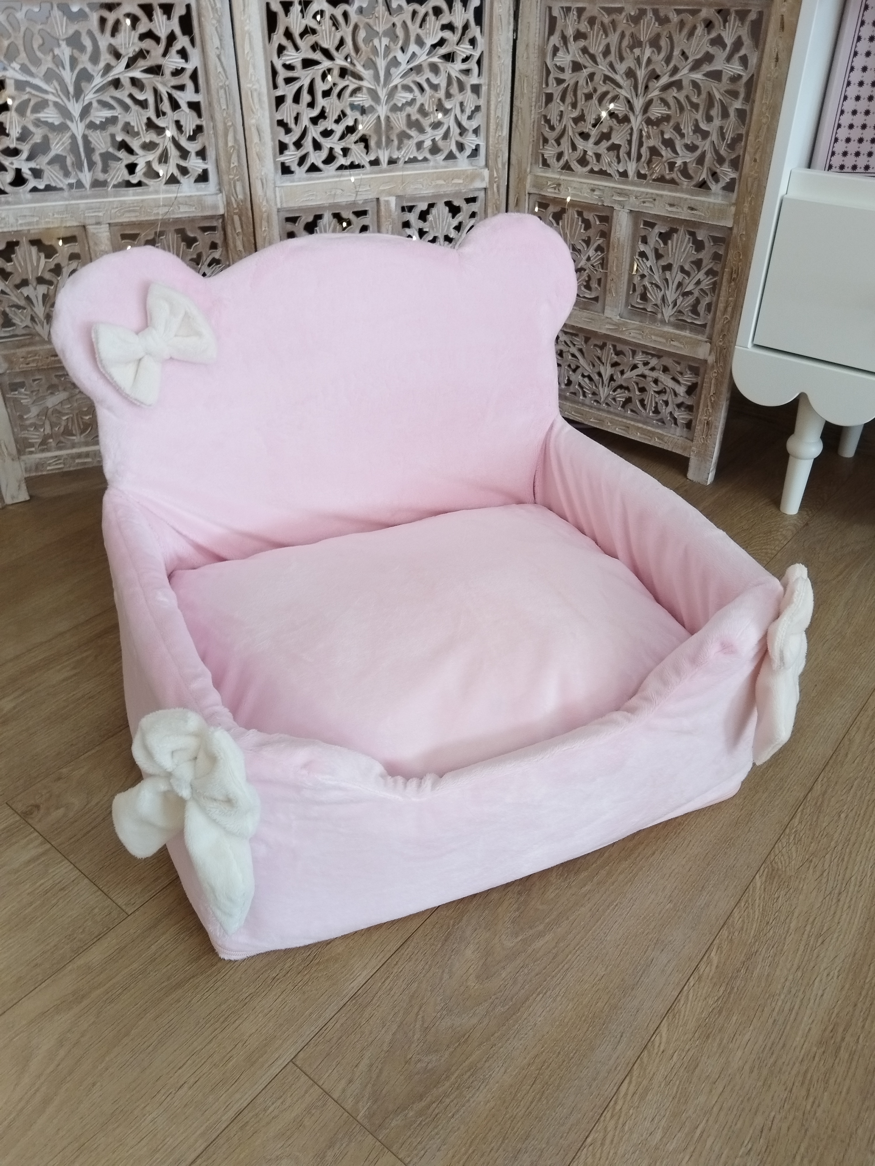 ✨ Modèle Housse pour Cute Teddy 🎨 Couleur Dans teintes Rose 📏 Dimensions Adaptée au Cute Teddy Angel & Gladys ⚜️ Matière Minky 🌸 Détail Nœuds Bonheur cousus. La housse du coussin est fournie avec...
