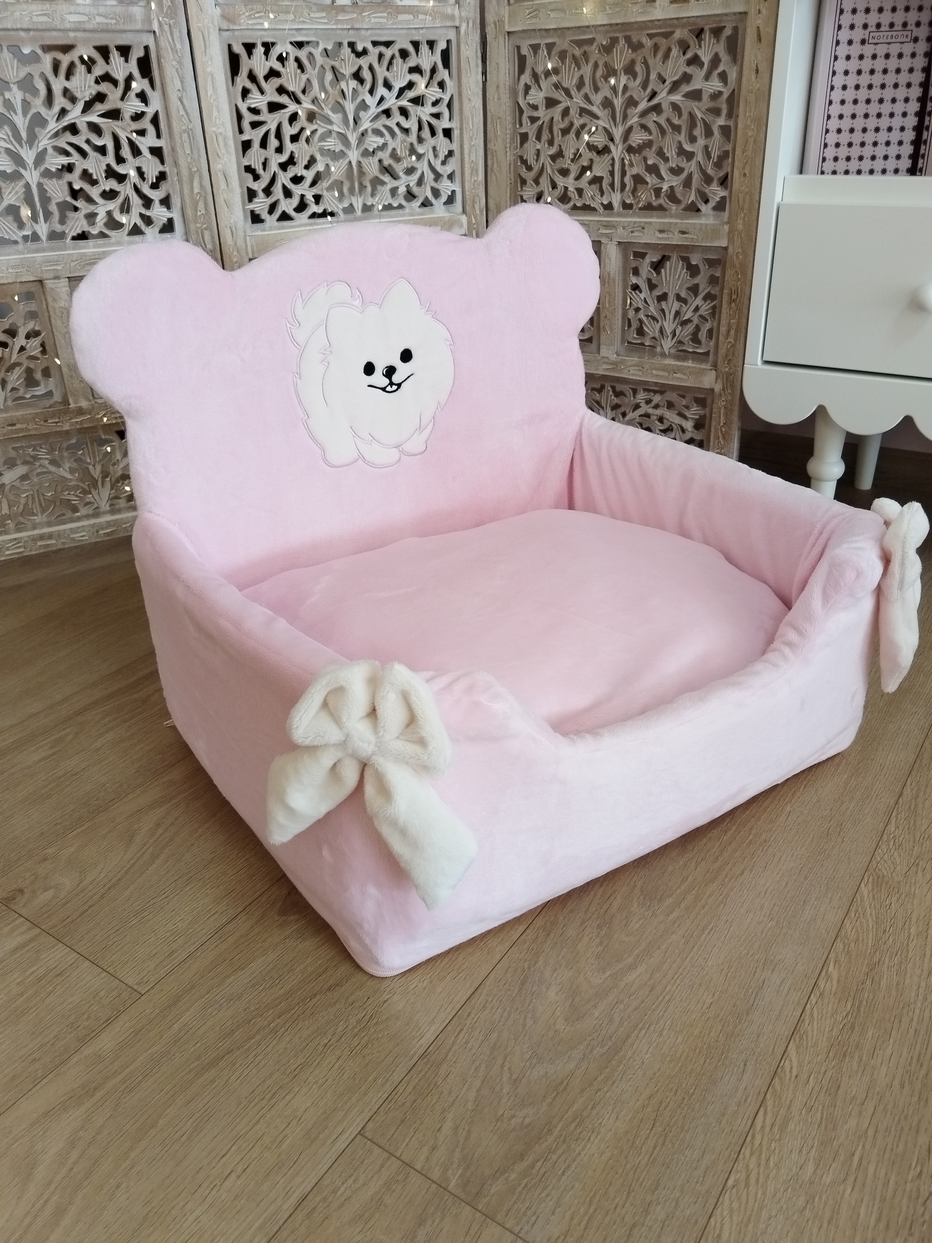 ✨ Modèle Housse pour Cute Teddy 🎨 Couleur Dans les teintes Roses Vanilles ⚜️ Matière Confectionnée en Minky 📏 Dimension Adaptée au Cute Teddy Angel & Gladys 🌸 Détail Nœuds Bonheur cousus. Broderie...