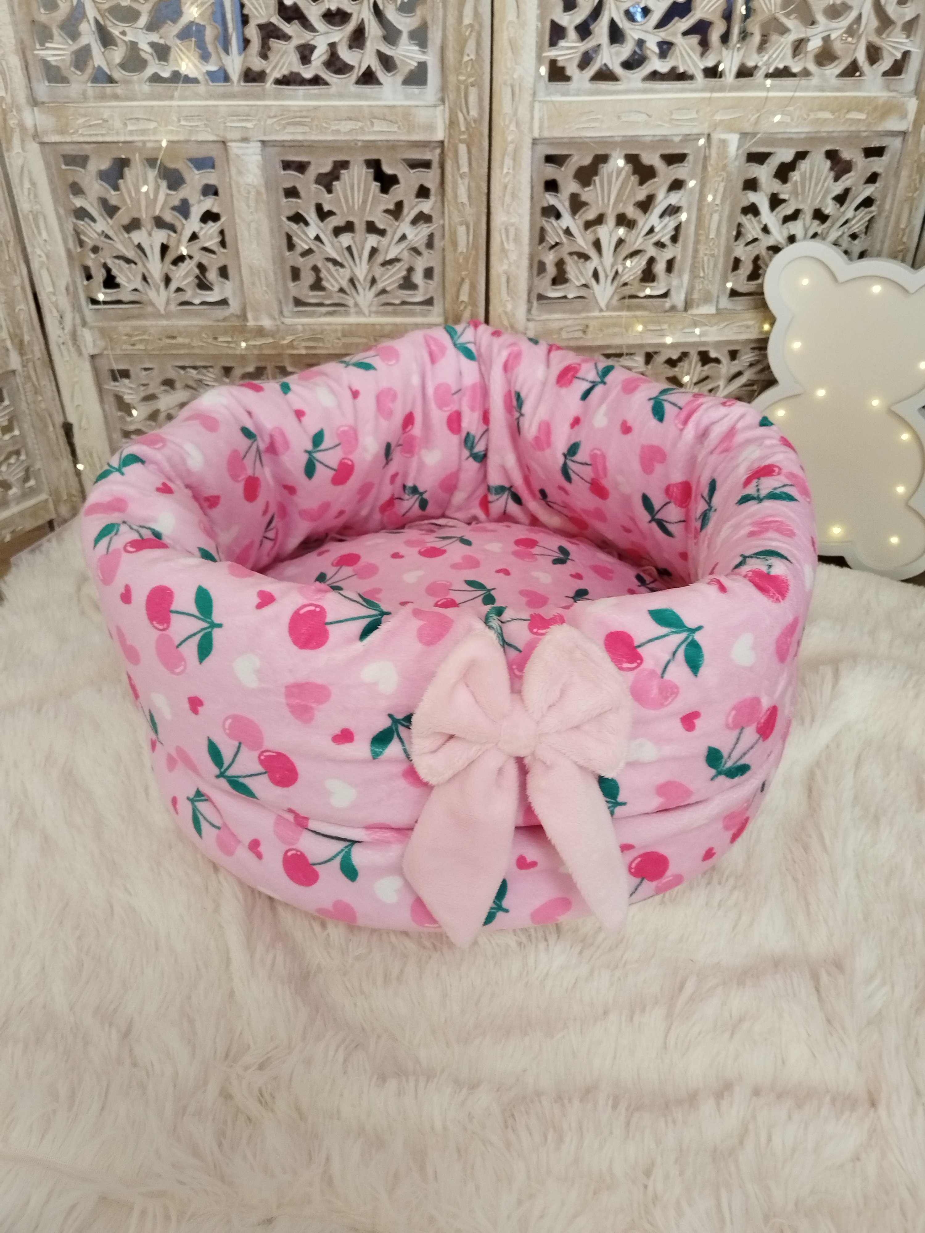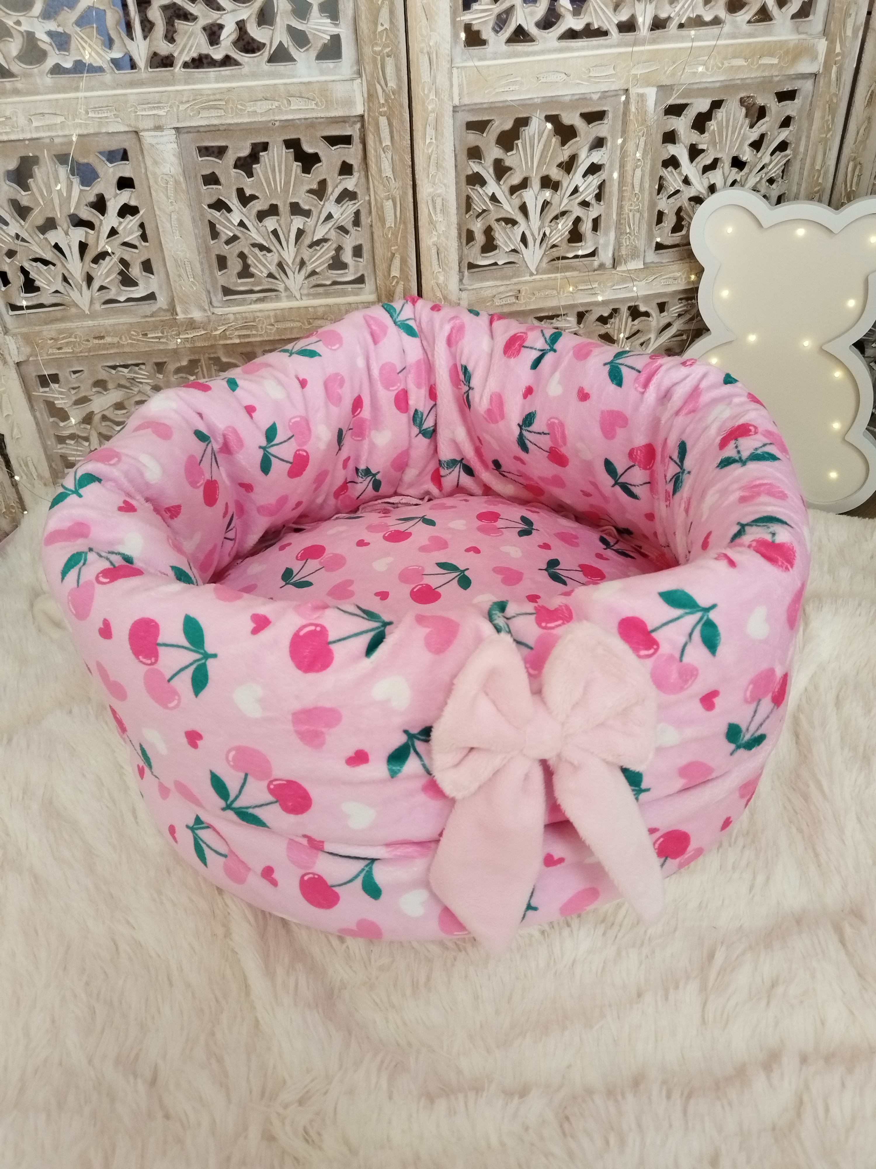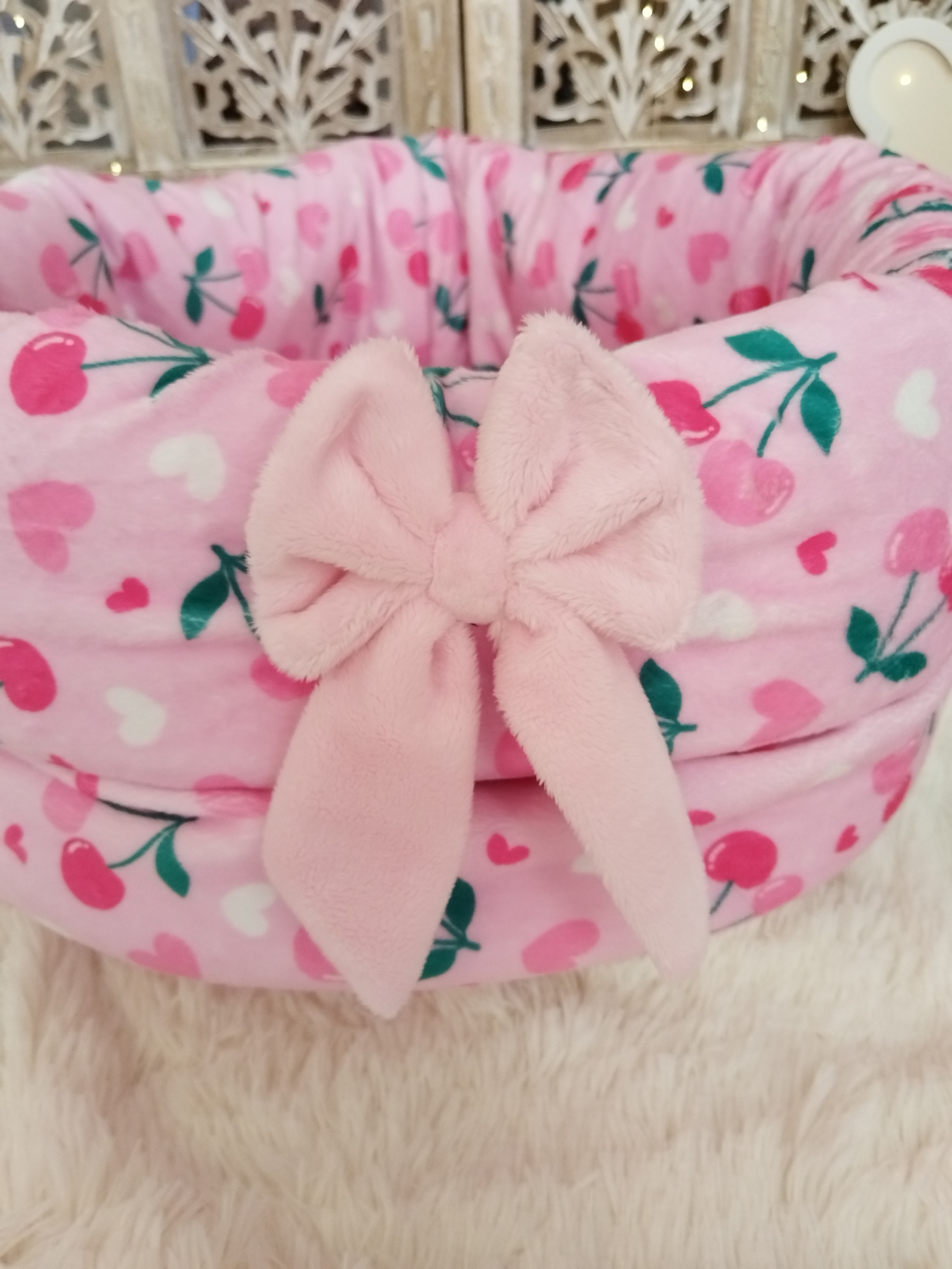 âš ModĂšle Chauffeuse đš Couleur Dans les teintes Roses Vanilles âïž MatiĂšre ConfectionnĂ©e en Minky đ Dimension 45 cm de diamĂštre Hauteur rĂ©glable grĂące Ă son bord pliable đž DĂ©tail NĆuds Bonheur...