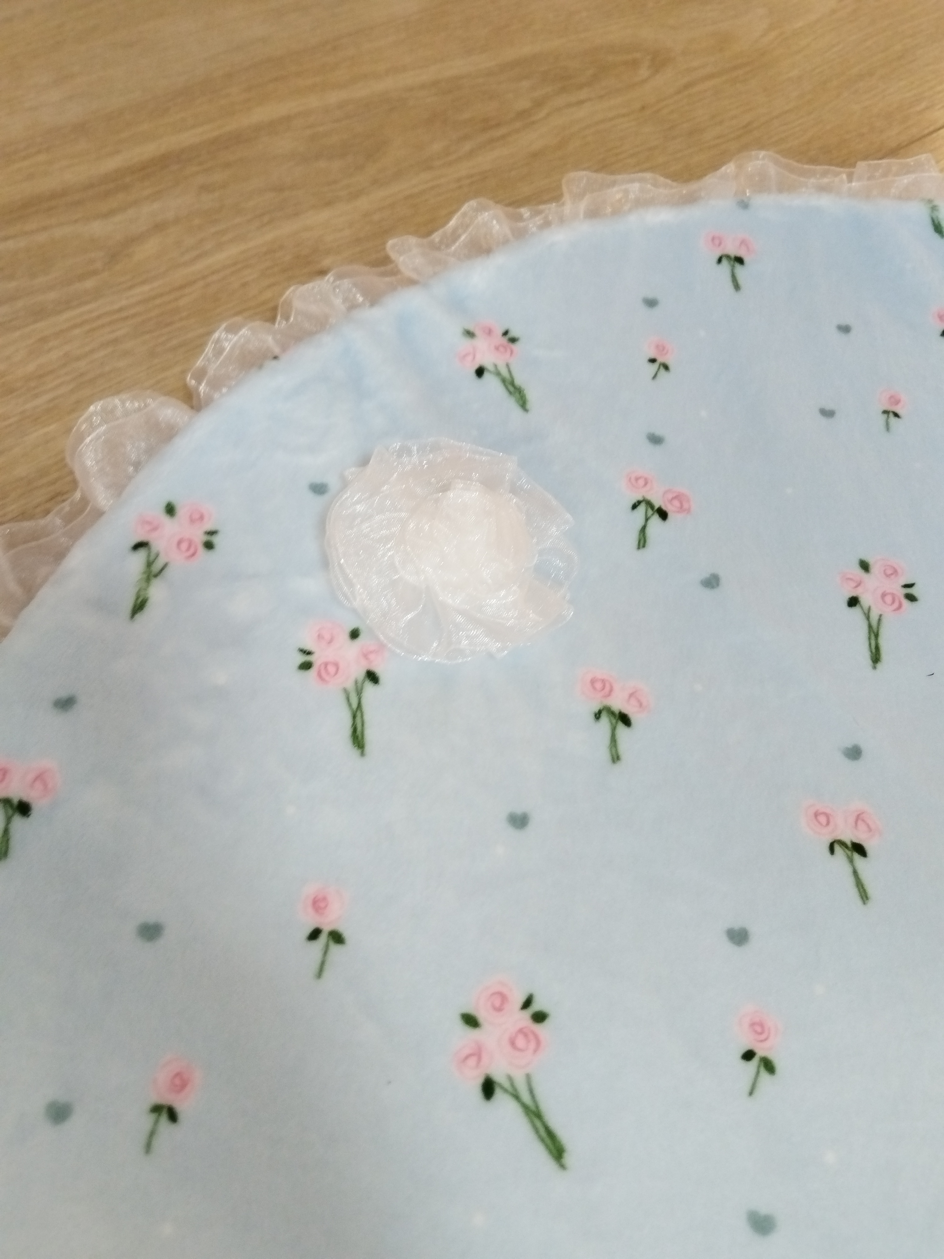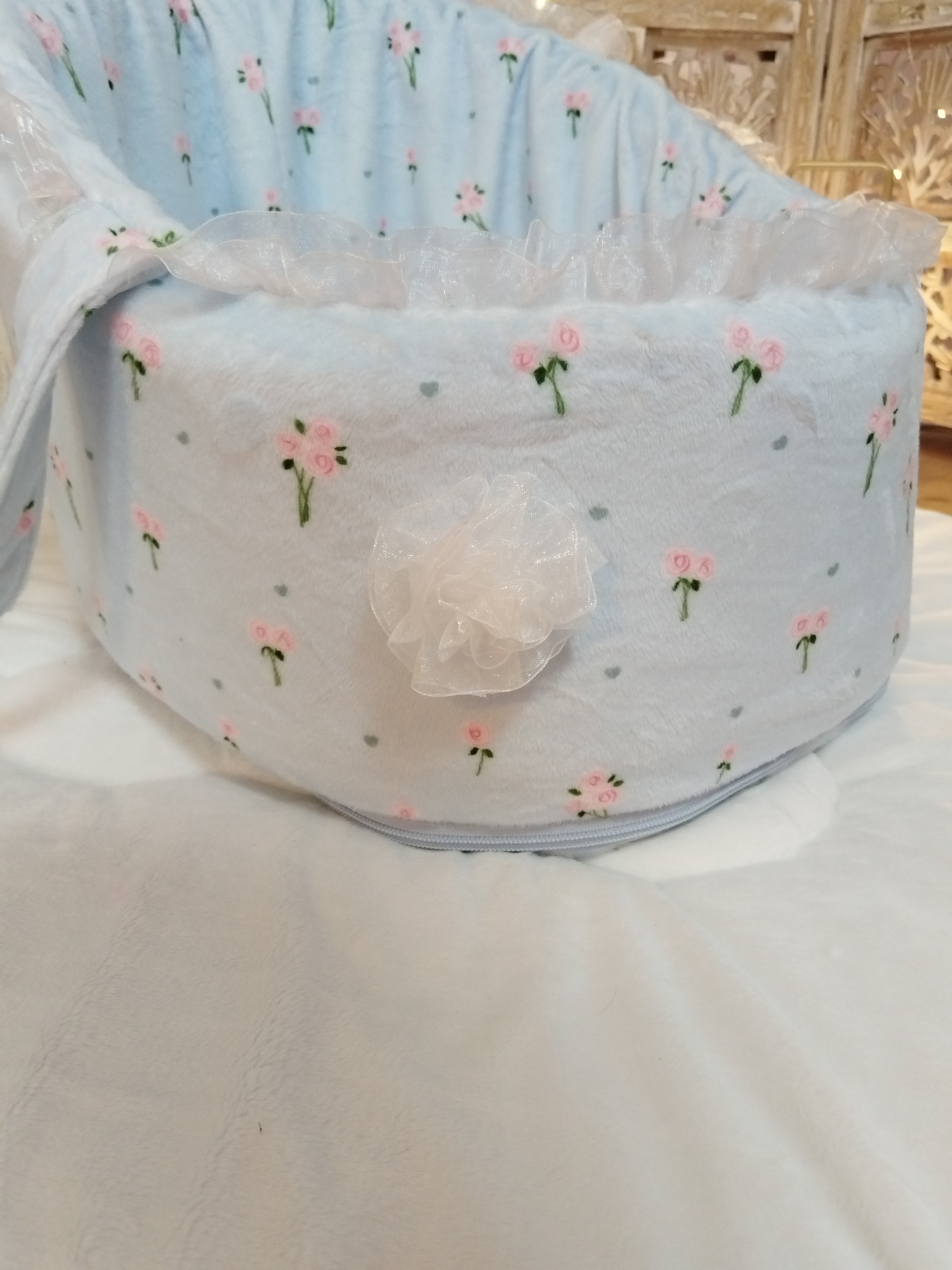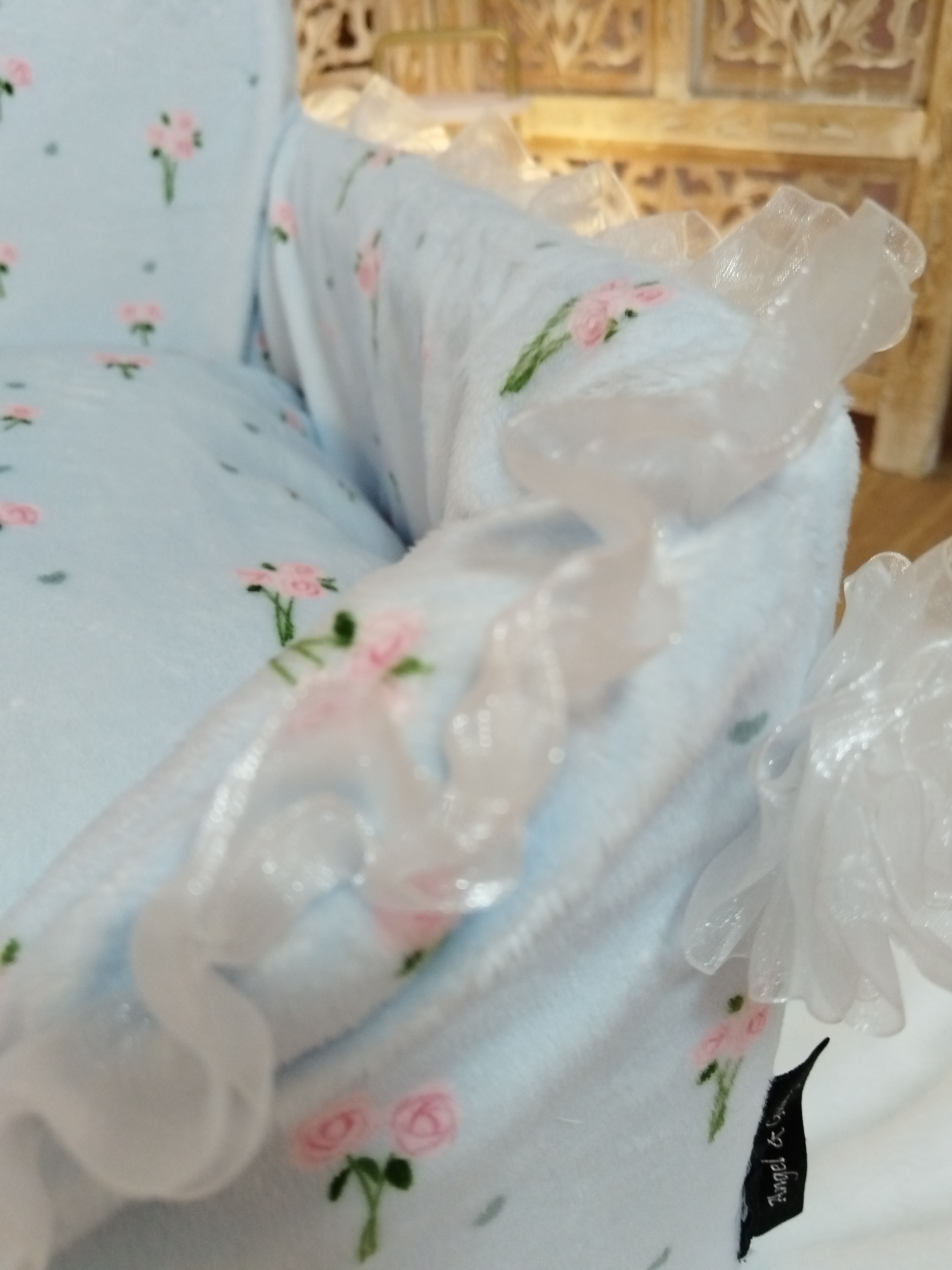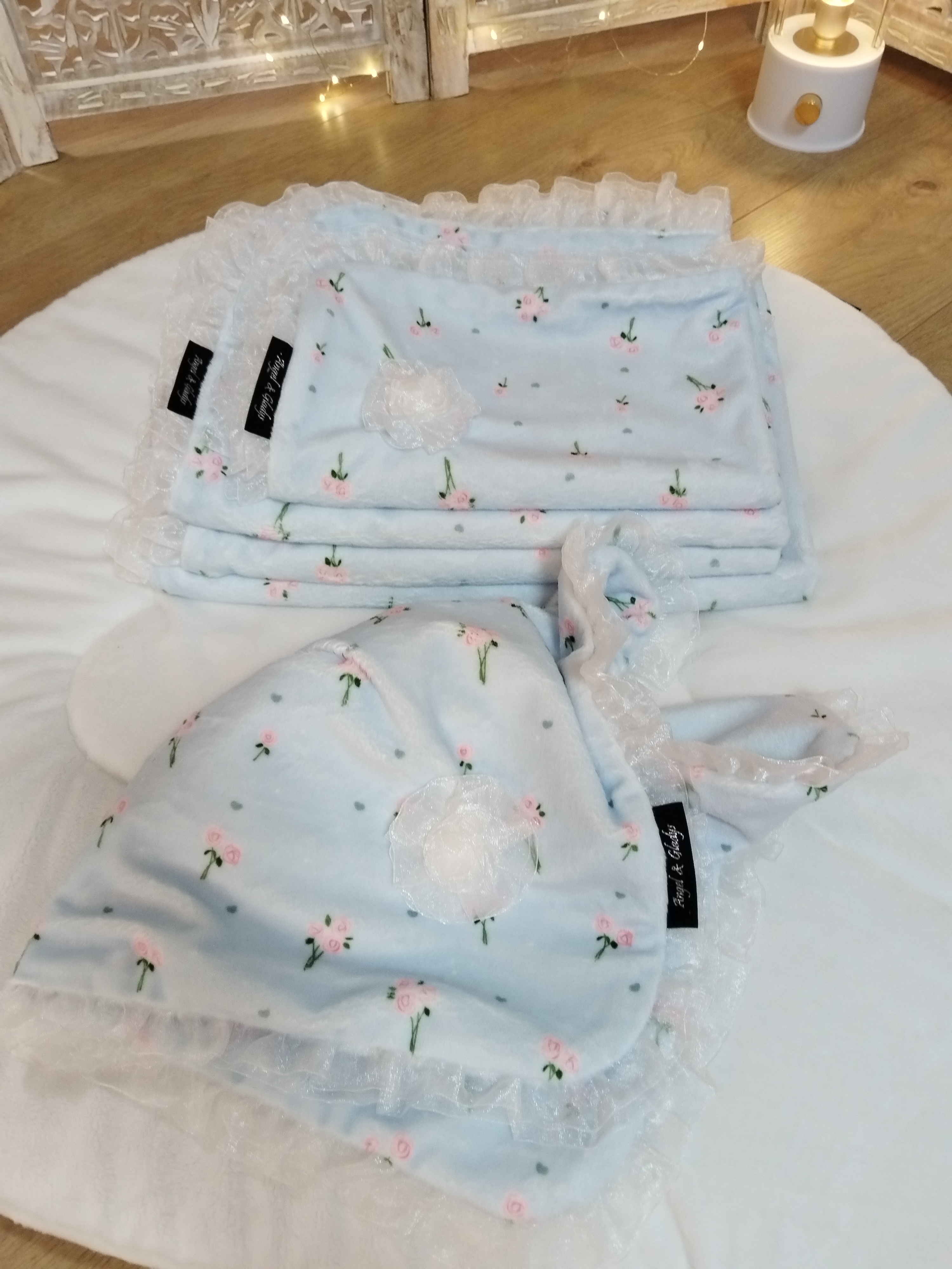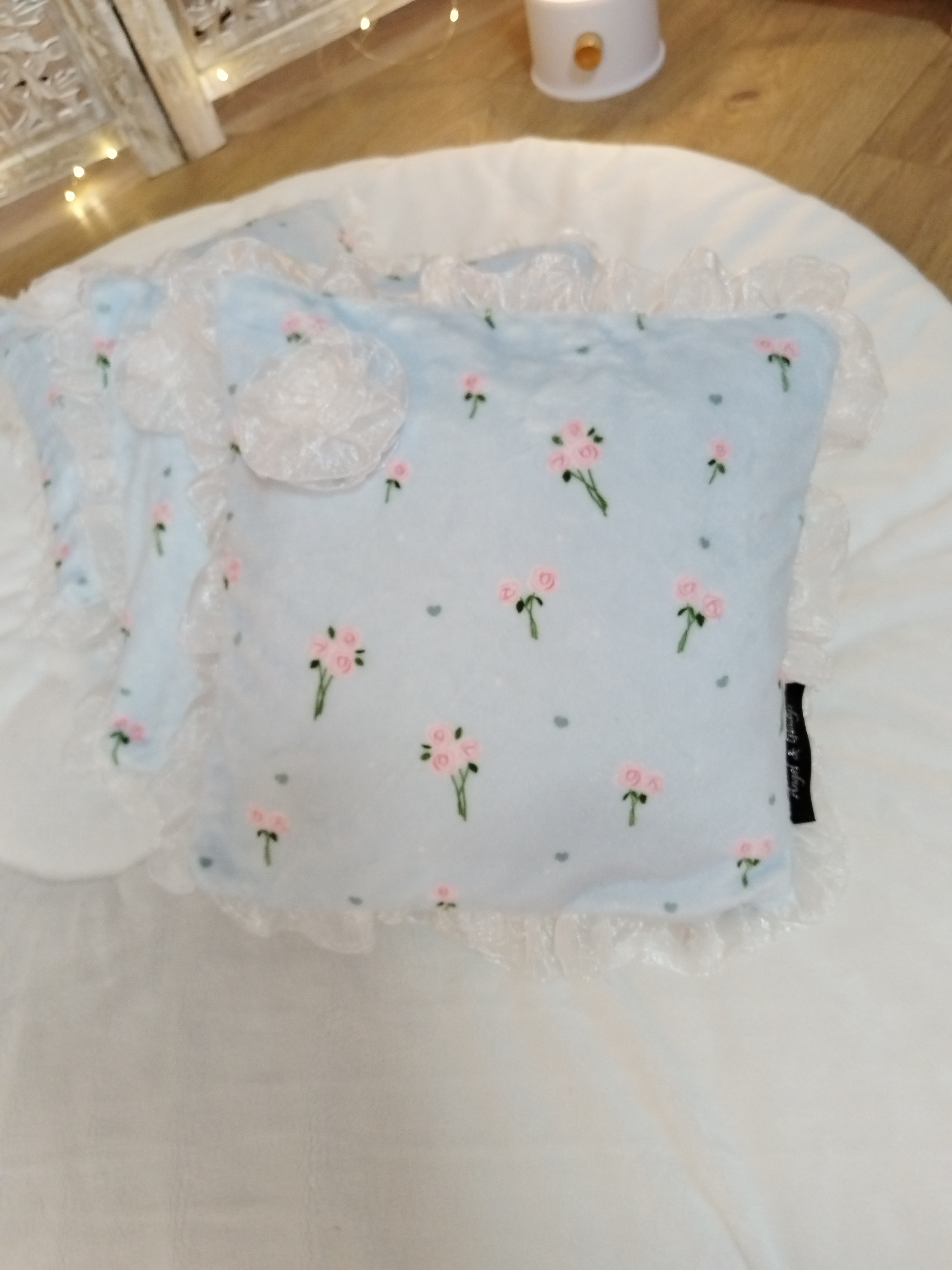 ✨ Modèle Couverture 📏 Dimensions • 60 × 40 cm • 50 × 70 cm • 80 × 60 cm ⚜️ Matière Minky doux avec volant en organza 🌸 Détails • Finition avec volant en organza 🧼 Conseils d’entretien •...
