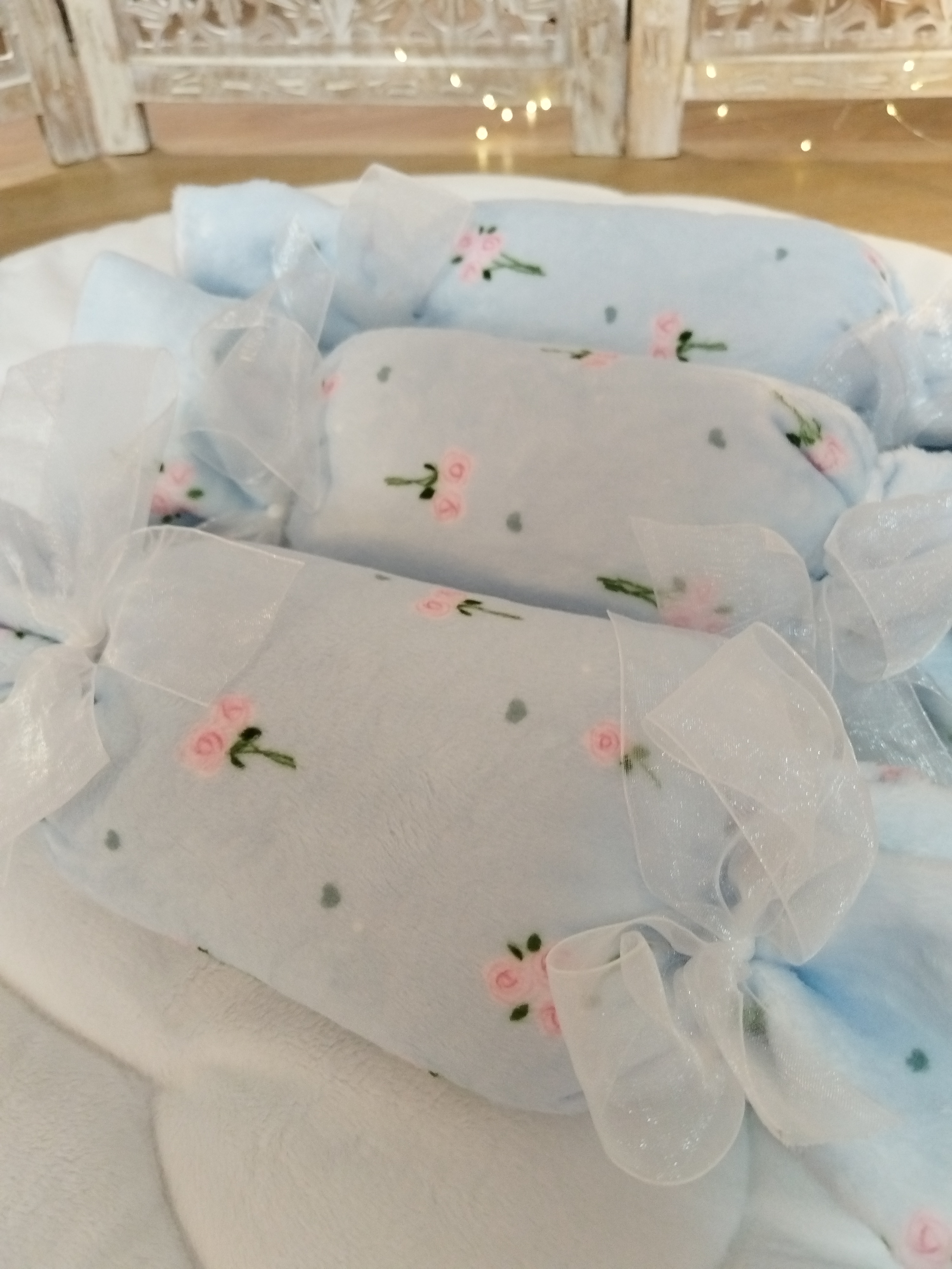 ✨ Modèle Coussin Bonbon 📏 Dimensions • Environ 30 cm ⚜️ Matière Minky doux 🌸 Détails • Floche en organza 🧼 Conseils d’entretien • Lavage en machine à 30 °C • Essorage doux (max. 800...