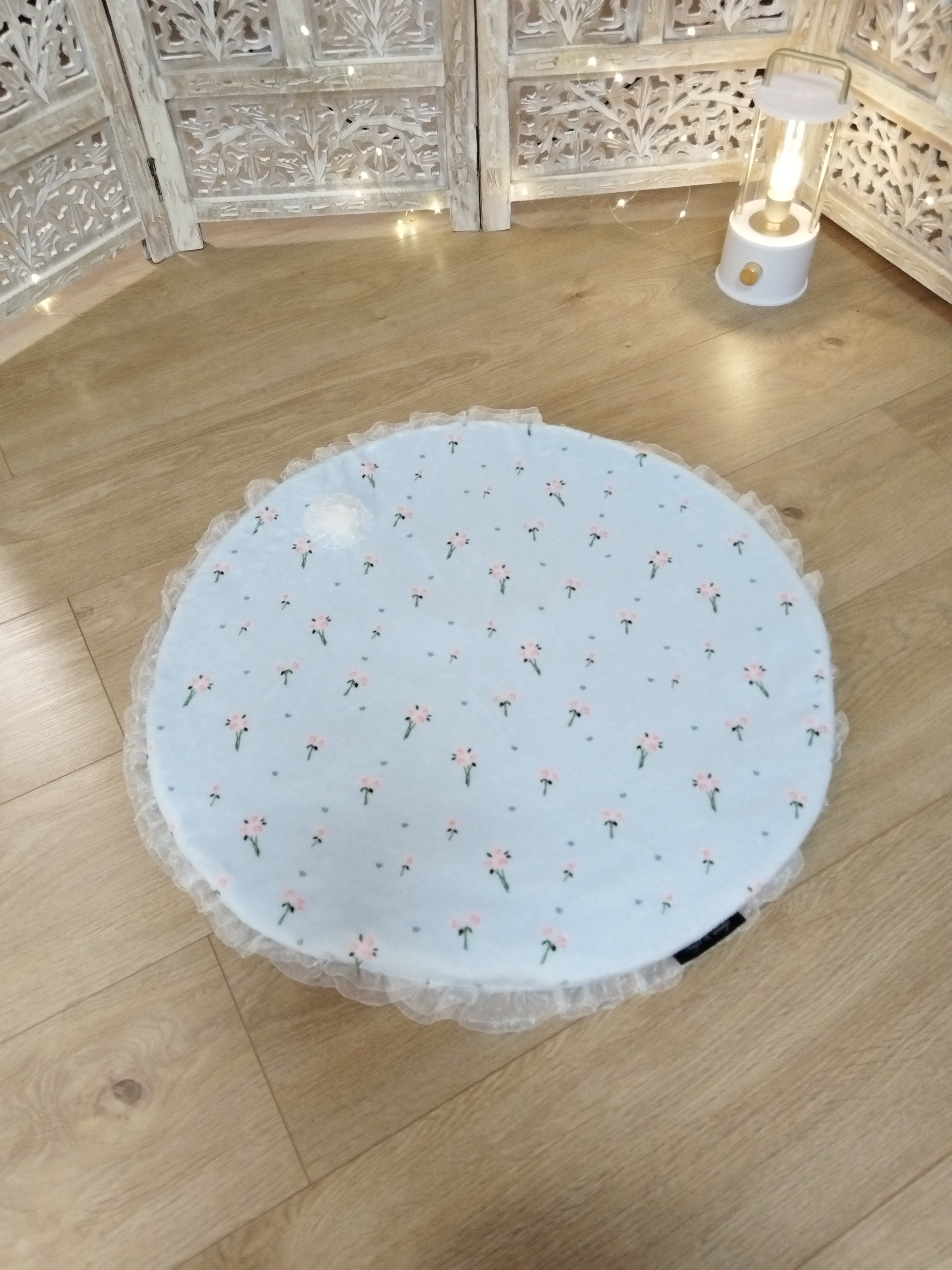 ✨ Modèle Tapis ouatiné 📏 Dimensions • 60 cm • 80 cm ⚜️ Matière Minky doux avec volant en organza 🌸 Détails • Tapis ouatiné • Non déhoussable 🧼 Conseils d’entretien • Lavage en machine à 30...