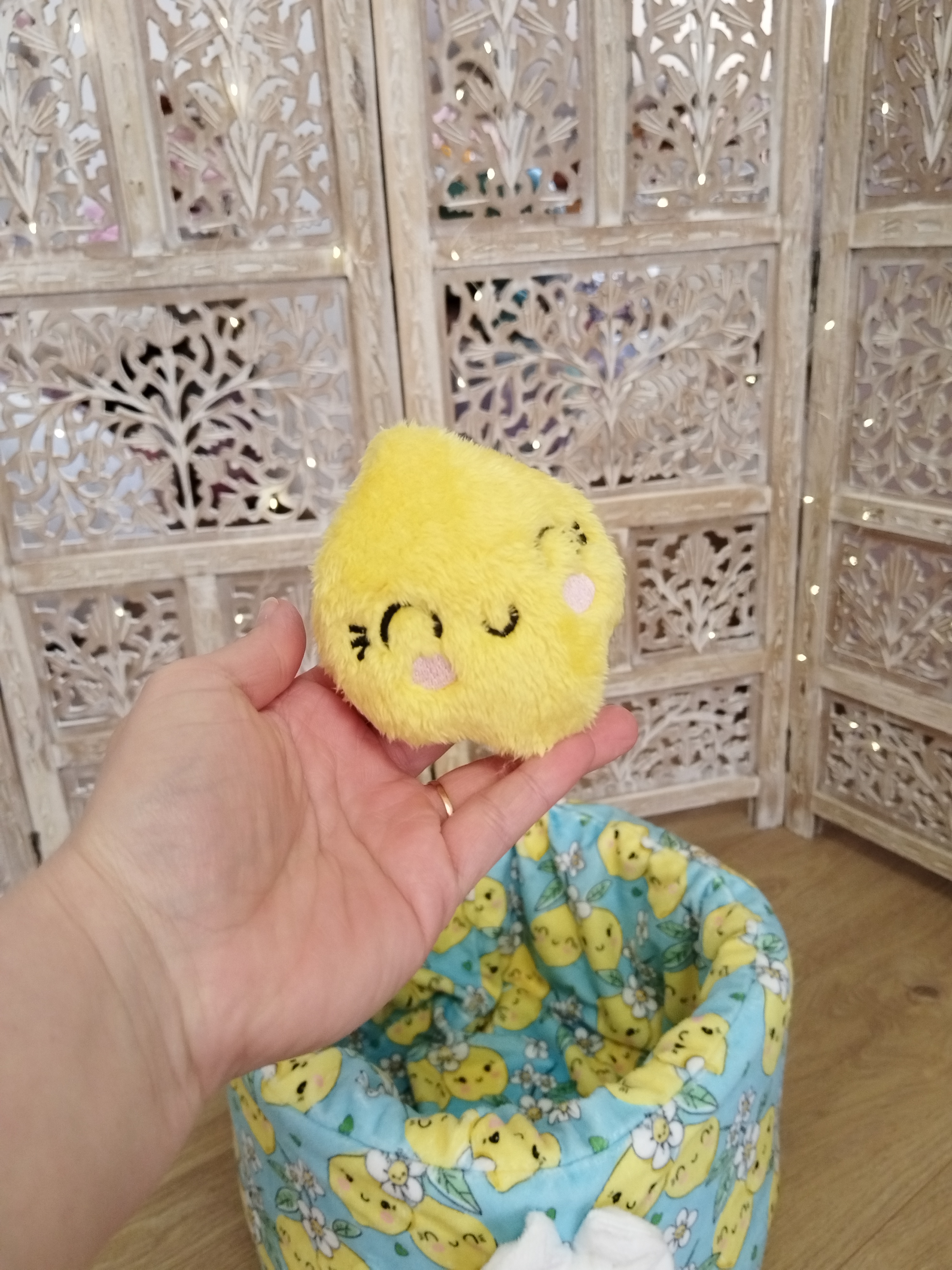 ✨ Modèle Jouet citron – sonore 📏 Dimensions • ± 10 × 8 cm ⚜️ Matière Pilou doux 🌸 Détails • Jouet en forme de citron • Ouatiné pour plus de moelleux • Sonore avec grelot 🧼 Conseils...