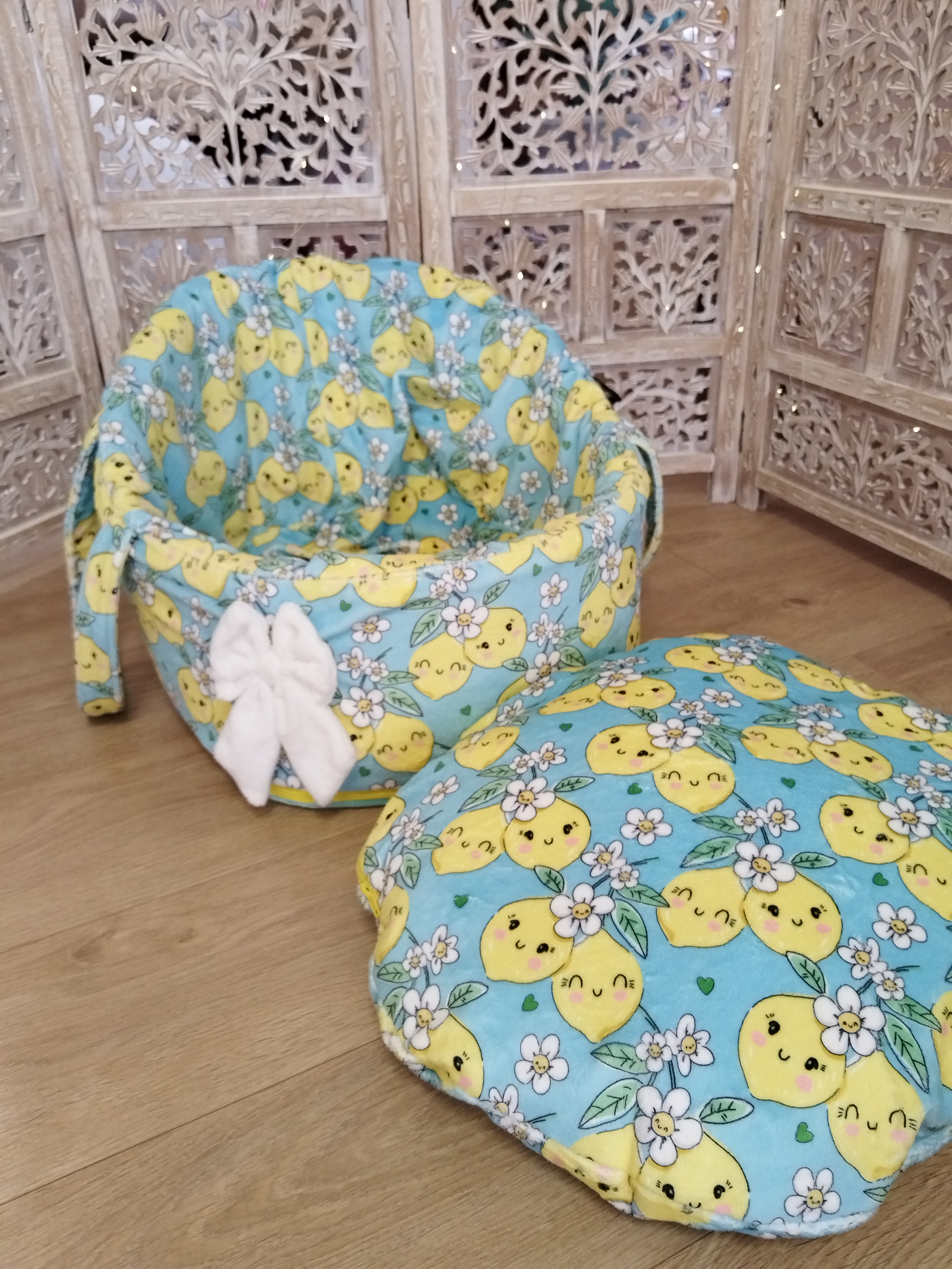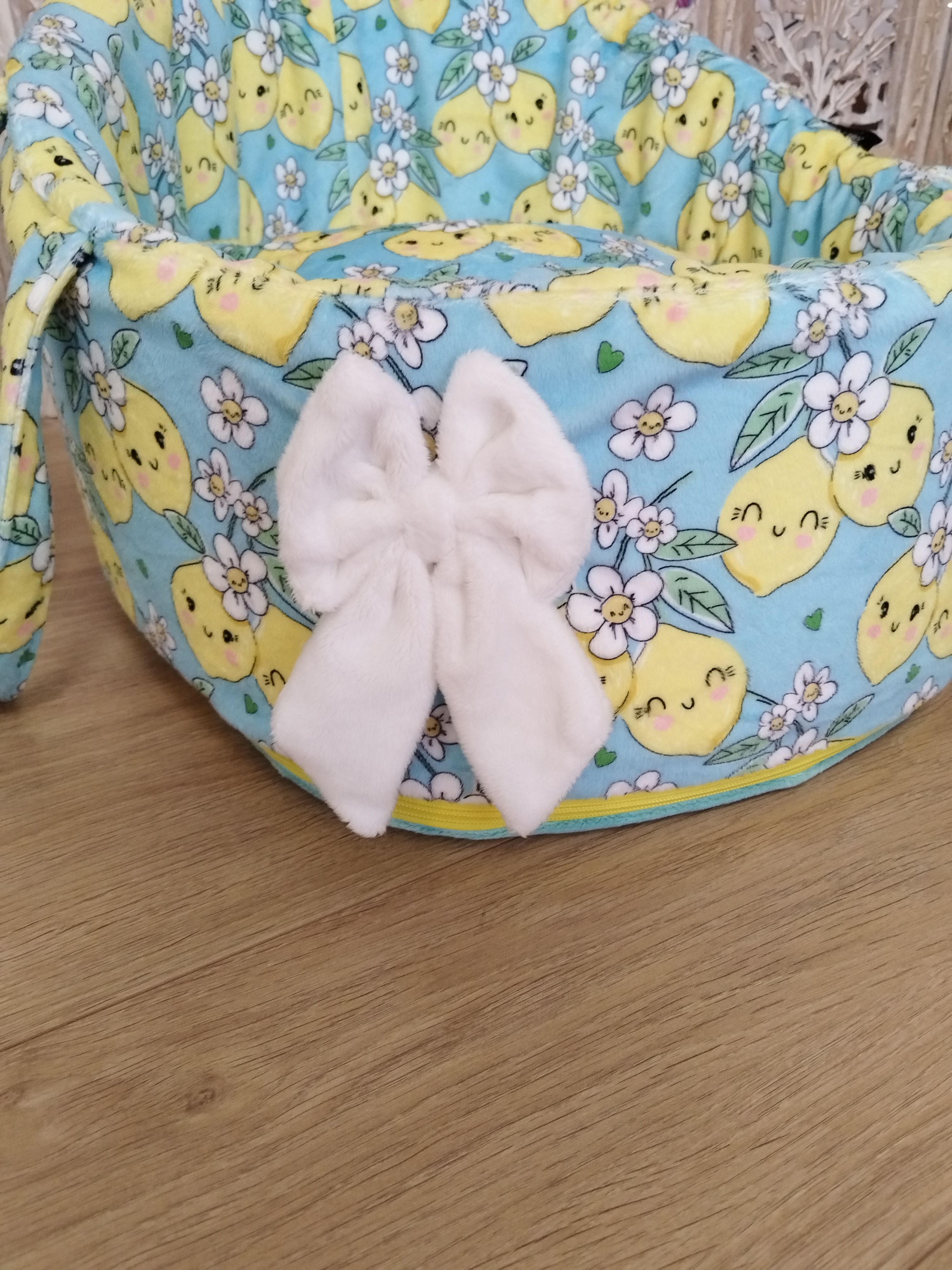 ✨ Modèle Cocoon – panier souple à ajouter à l’intérieur du Softygloo Bandeau – bandeau à fixer à l’arrière du Softygloo Housse – housse pour le coussin du Softygloo ⚜️ Matière Minky 📏 Dimensions...